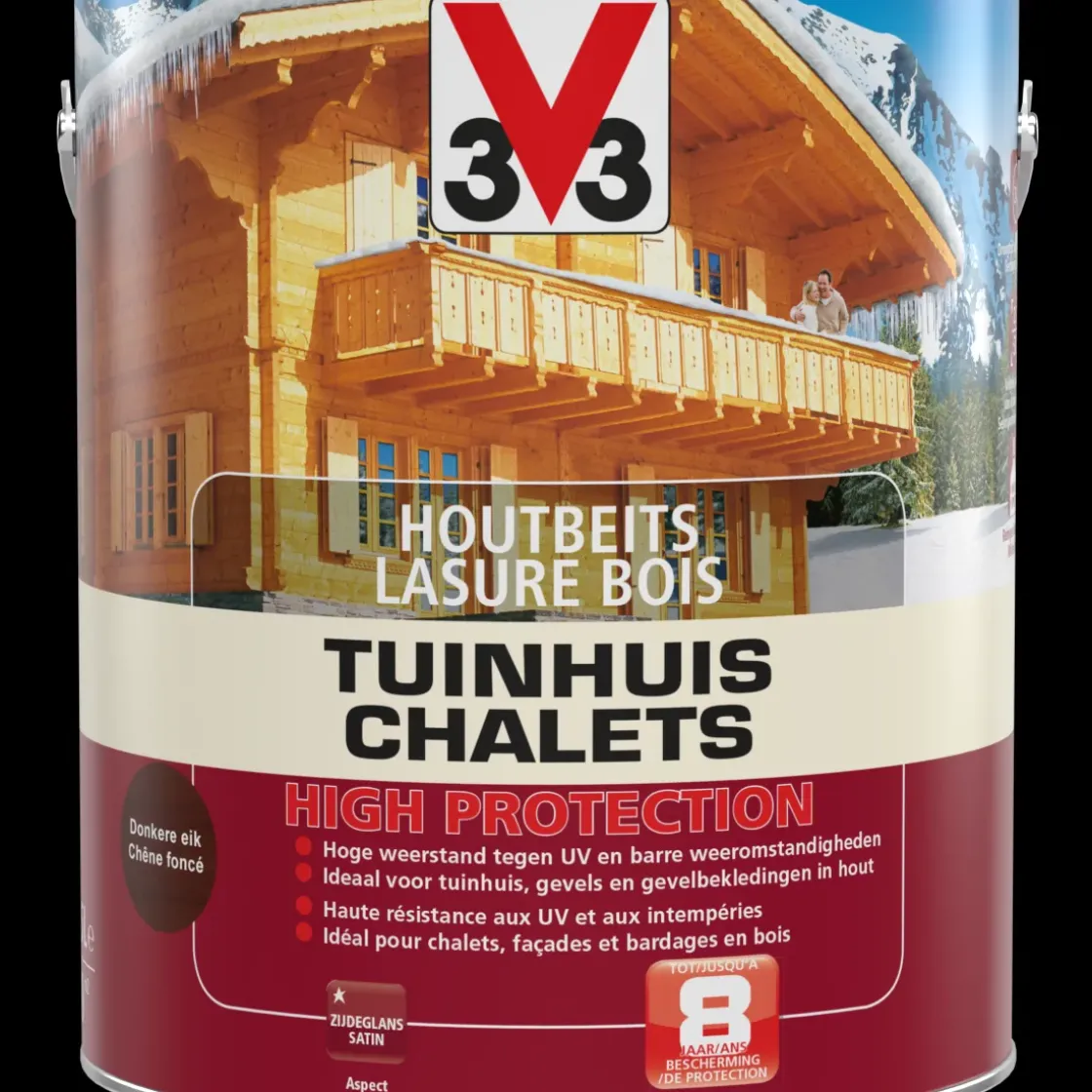 V33 Houtbeits Tuinhuis High Protection Donkere Eik Zijdeglans 2,5L-Brico Best