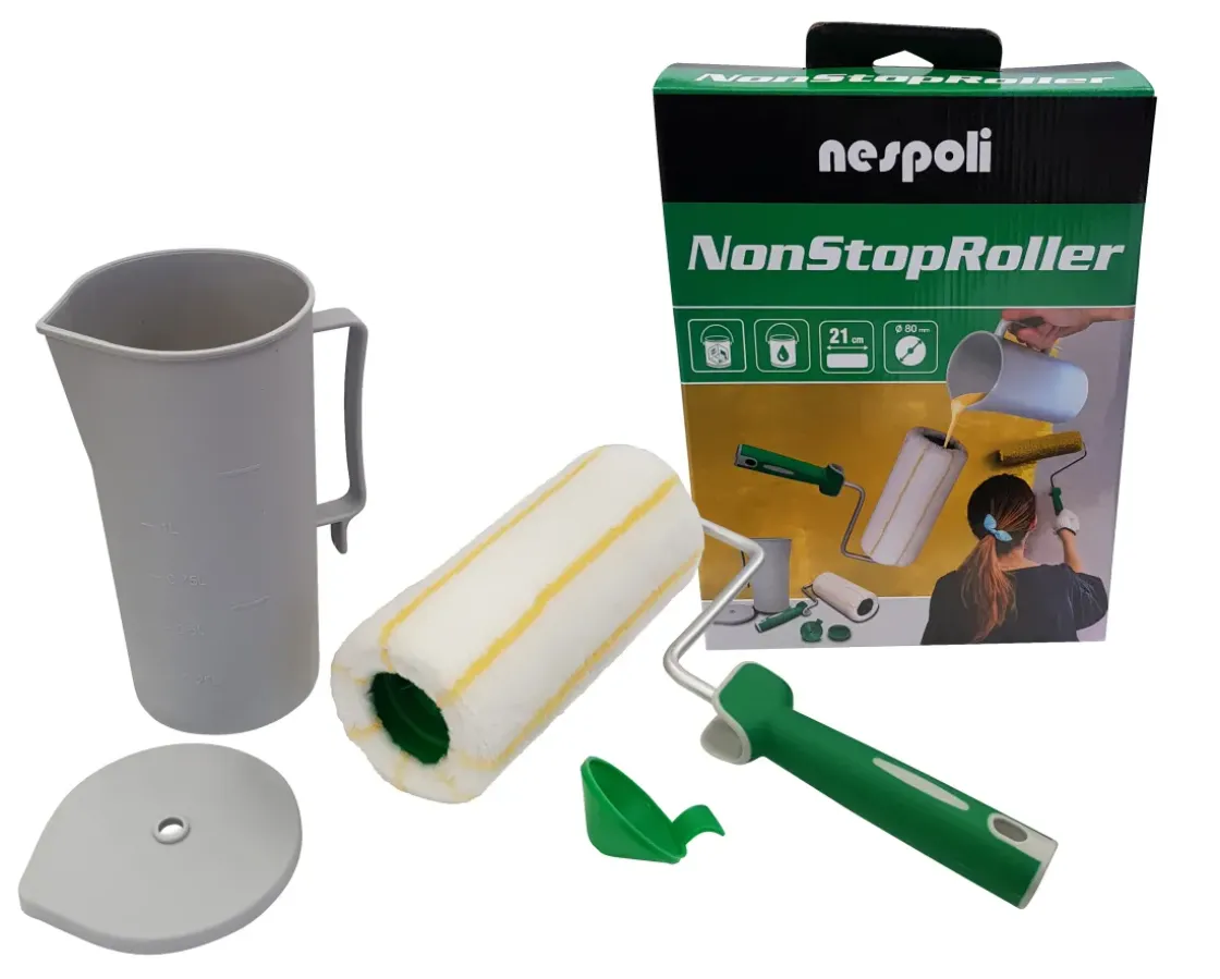 De Nespoli Group Nonstoproller, Is Een Verfroller Die Geschikt Is Voor Muurverf Voor Gladde En Licht Gestructureerde Oppervlakken.Het Is Een Complete Verfroller Met Ingebouwd Verfreservoir.