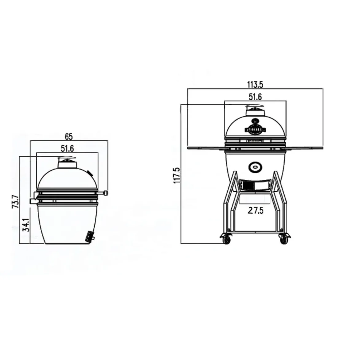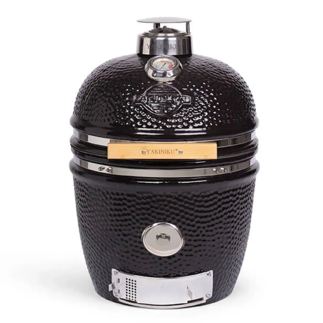 Alle Kamado’S Hebben Een Luxe Zwarte Uitvoering En Zijn Vervaardigd Van De Beste Materialen En Kunnen Alle Weersomstandigheden Aan. Eenvoudige Bediening, Professioneel Resultaat. De Yakiniku Is De Ultieme Kamado Grill Voor Iedereen Die Houdt Van Het Rokerige Grillsmaakje. De 16″ Inch Yakiniku Heeft Een Grill Oppervlakte Van 41 Cm. Voorzien Van Extra Dik Keramiek Van De Hoogste Kwaliteit In Combinatie Met Het Zeer Sterke Mineraal Cordieriet En Quartz. Alle Onderdelen Zijn Vervaardigd Uit Rvs. De Handvaten Van Bamboe Zodat Je Deze Veilig Kunt Bedienen. De Schoorsteen Heeft Een Hoedje, Zodat Jouw Culinaire Pronkstuk Niet Beinvloed Wordt Door Regen. De Grote Asschaal, Die Breed Uitloopt Zorgt Voor Meer As Opslag. Het Deksel-Afsluiting Is Gemaakt Van Onbrandbaar Vilt. De Zuurstofaanvoer Van De Yakiniku Is Onderverdeeld In Maateenheden, Dit Zorgt Voor Een Preciezere Instelling. De Yakiniku Is Voorzien Van Een Uniek Ontworpen Woodchipper Die Luchtdicht Is En Dubbel Geisoleerd. Hierdoor Kun Jij Deze Kamado Bedienen, Zonder Je Vingers Te Verbranden.