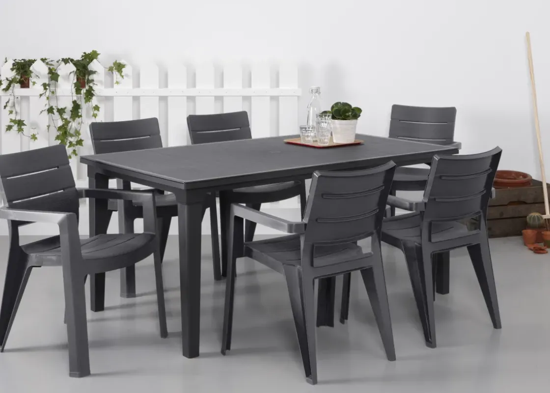 Deze Tuintafel Futura Van Allibert Is Ideaal Voor Een Etentje In De Tuin. Hij Is Gemaakt Van Kunststof Heeft Een Mooie Grafietkleur. Door De Structuur Heeft Deze Tijdloze Tafel De Look En Feel Van Een Houten Exemplaar, Maar Is Veel Lichter, Gerecycled, Erg Gebruiksvriendelijk En Onderhoudsvrij. De Futura Is Bovendien Bestand Tegen Alle Weersomstandigheden. Een Aanwinst In Elke Tuin Dus!