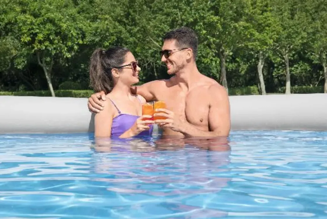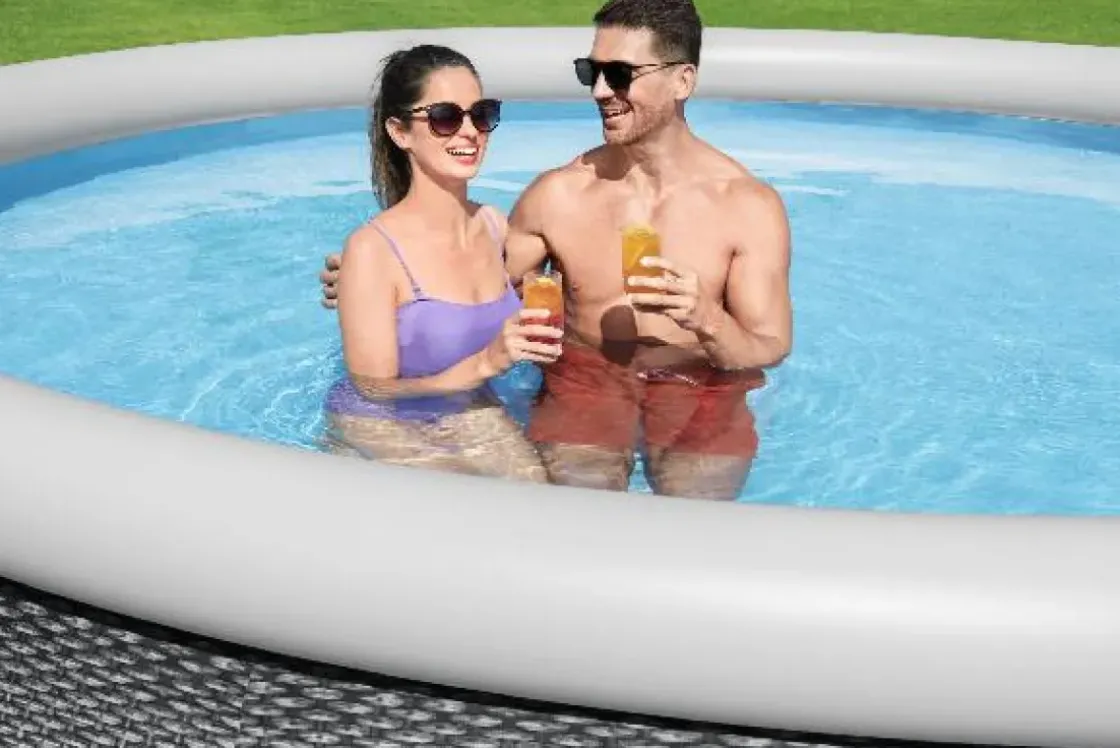 Dit Ronde Bestway Zwembad Met Opblaasrand En Een Realistische Rotanprint. Snel En Simpel Op Te Zetten, Zonder Gereedschap. Het Opzetzwembad Is Gemaakt Van Duurzaam Duraplus Materiaal En Bestand Tegen Uv-Stralen En Chloor. Getest Op Gewicht En Druk Van Grotere Hoeveelheden Water.