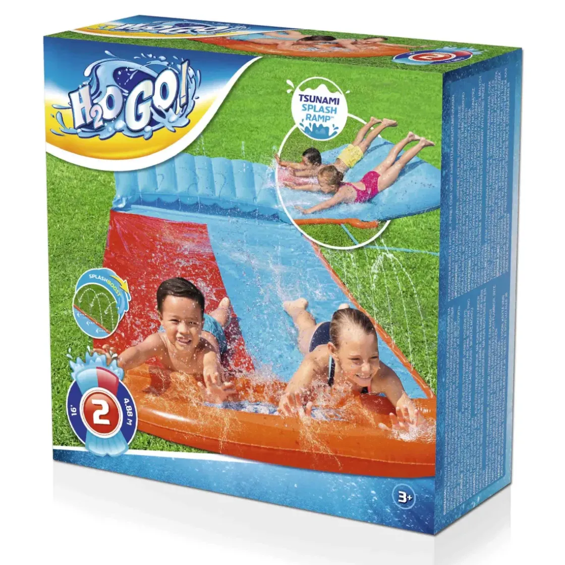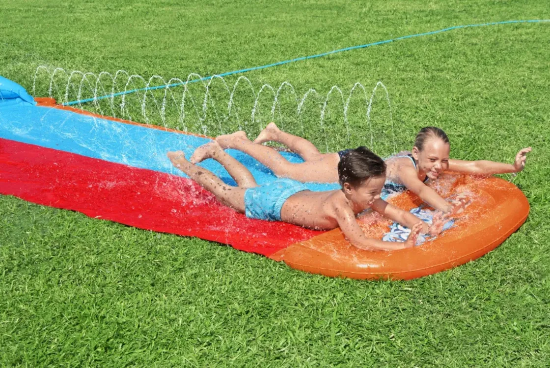 De Bestway 52478 Waterglijbaan Heeft Twee Banen Zodat Kinderen Samen Kunnen Starten En Met Vriendjes Kunnen Racen. Deze 488 Cm Lange Glijmat Is Voorzien Van Een Tsunami Splash Pad Dat Golven Van Water Onder Het Pad Duwt, Waardoor Een Ongelooflijk Gladde, Snelle En Zompige Rit Ontstaat! De Mat Heeft Een Zachte Landingszone En De Sporen Zorgen Ervoor Dat Je Steeds Sneller Glijdt Terwijl Je Racet.