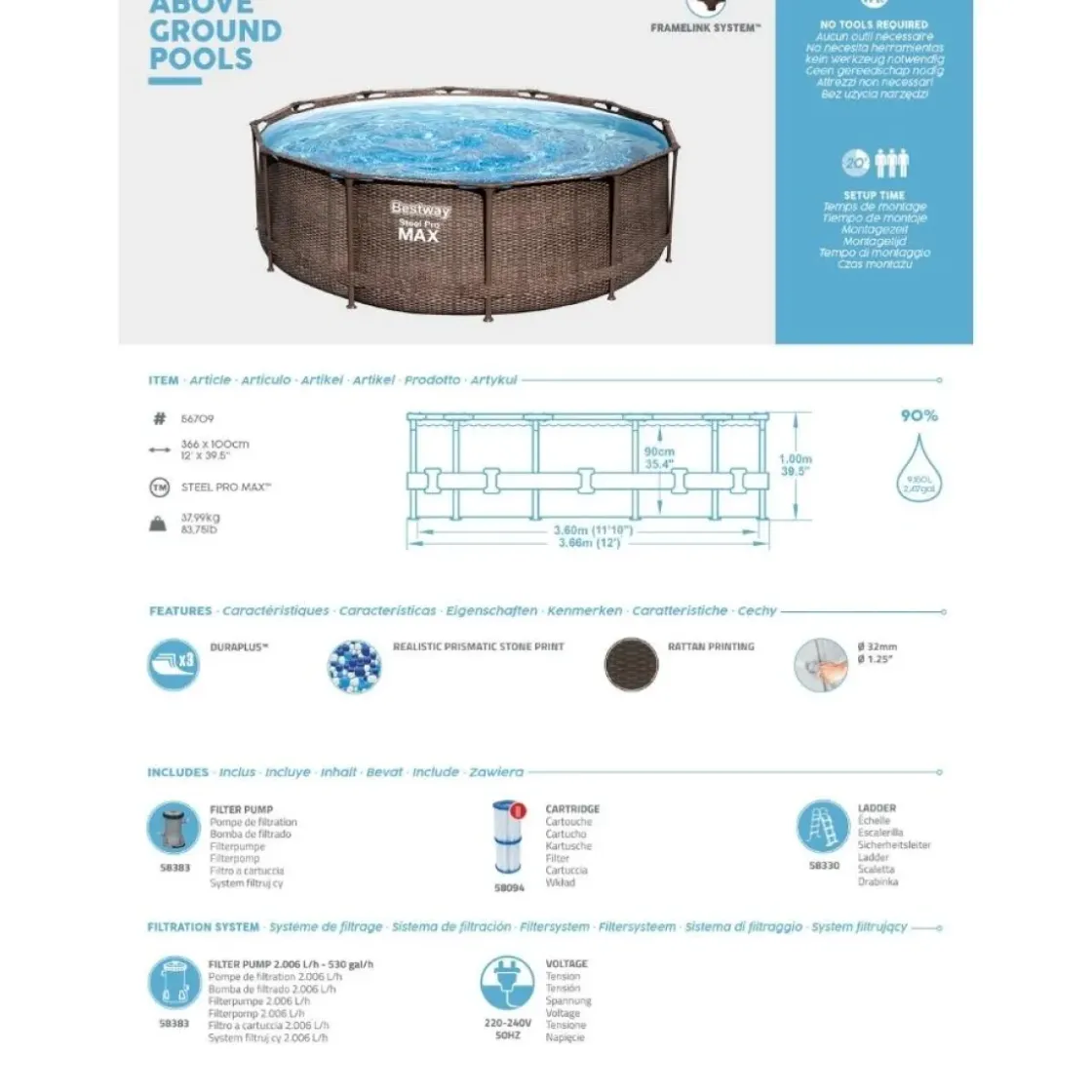 Bestway Zwembad Steel Pro Max Rotan 366 Cm-Brico Clearance