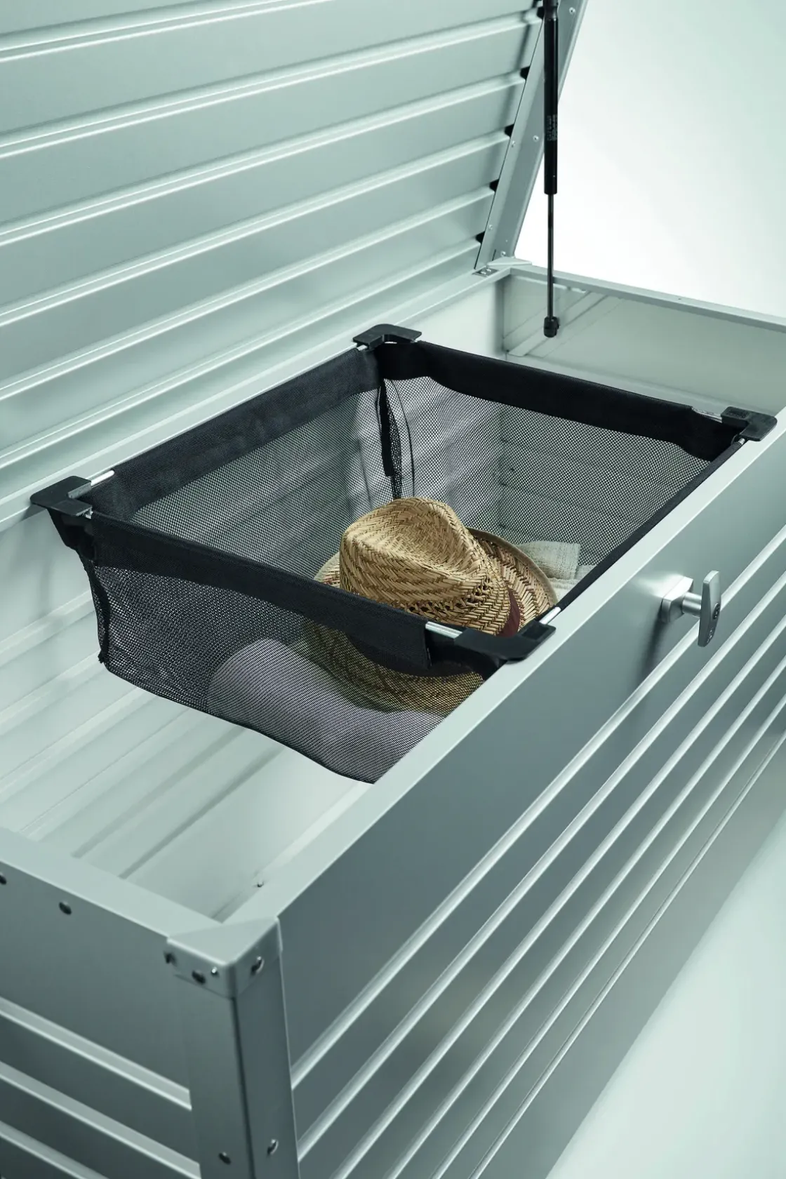 Om Kleine Spullen Op Te Bergen En Snel Weer Terug Te Vinden, Bestaat Er De Mogelijkheid Voor Het Plaatsen Van Een Dekselnet Of Een Inhangzak. Het Dekselnet Kan Aan De Binnenkant Van De Opbergbox Worden Ingebouwd. Ideaal Voor Het Bewaren Van Kleine Spullen. De Inhangzak Biedt Een Extra Opbergmogelijkheid En Leg Je Op Het Frame Van De Box. Ontvang Je Vaak Pakketjes? Bouw De Opbergbox Dan Eenvoudig Zelf Om Naar Een Pakketbox Met De Pakket-Box-Kit.