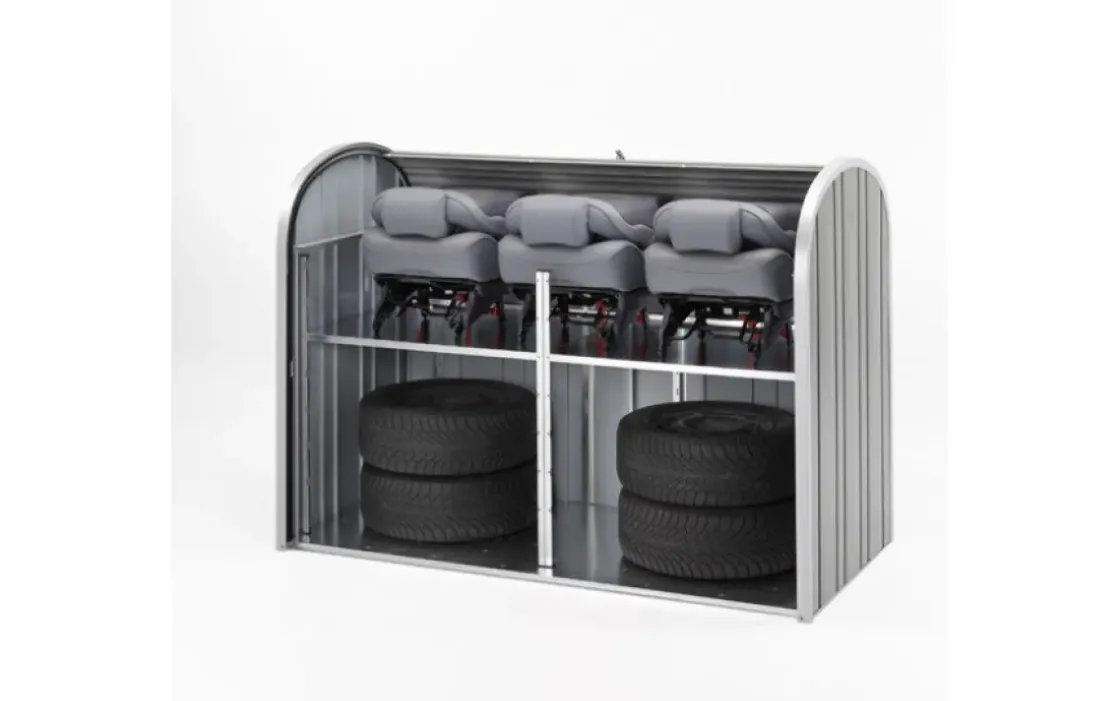 De Biohort Opbergbox Storemax 190 Is De Kleine Broer Van De Metalen Bergingen En Biedt Maximale Opbergruimte Als Je Weinig Ruimte In Je Tuin Hebt. Je Kunt De Box Gebruiken Als Garage Voor Je Grasmaaier Of Als Opslag Voor Afvalbakken Of Containers. Als Je De Tussenbodem Gebruikt Kun Je De Opbergruimte Zelfs Bijna Verdubbelen. Erg Praktisch Om Kleine Voorwerpen Zoals Tafelkleden Op Te Slaan Die Je Vaak Gebruikt. Om De Opbergbox Makkelijk Te Openen Is Hij Voorzien Van Een Tweedelig Openingssysteem Met Deuren Die Soepel Omhoog Glijden.