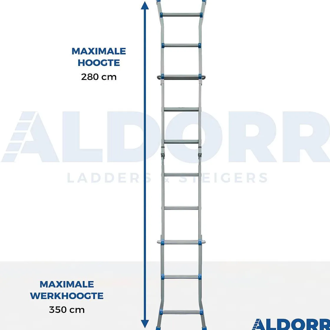 De Vernieuwde Aldorr Multiladder Uitschuifbare Vouwladder Is De Ideale Ladder Voor Verschillende Klussen. De Veelzijdige Ladder Is Gemaakt Van Hoogwaardig Aluminium En Is Op Vele Manieren Te Gebruiken: Bijvoorbeeld Als Rechte Ladder Maar Ook Vrijstaand In De A-Stand Als Vouwladder. De Multiladder Is De Perfecte Vouwladder Om Te Kunnen Werken Op Ongelijke Niveaus. Beide Poten Zijn Afzonderlijk Van Elkaar In Te Stellen Op De Juiste Lengte. Bovendien Staat De Ladder Erg Stabiel, Doordat De Treden Breed Uitlopen Aan De Onderkant.