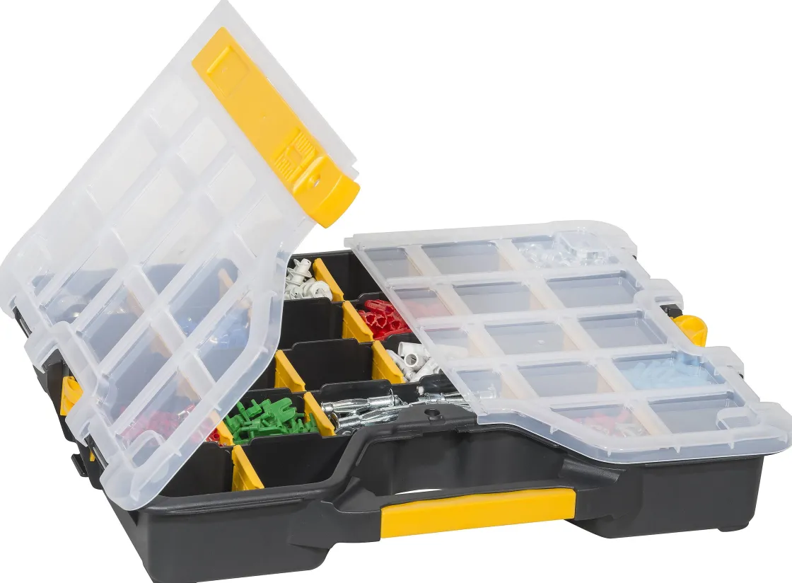 Deze 20-Delige Assortimentsdoos Is Een Praktische Kunststof Sorteerkoffer Met 20 Opbergvakken. Het Is Uitgerust Met Een Transparant Deksel En Twee Kunststof Sluitingen.