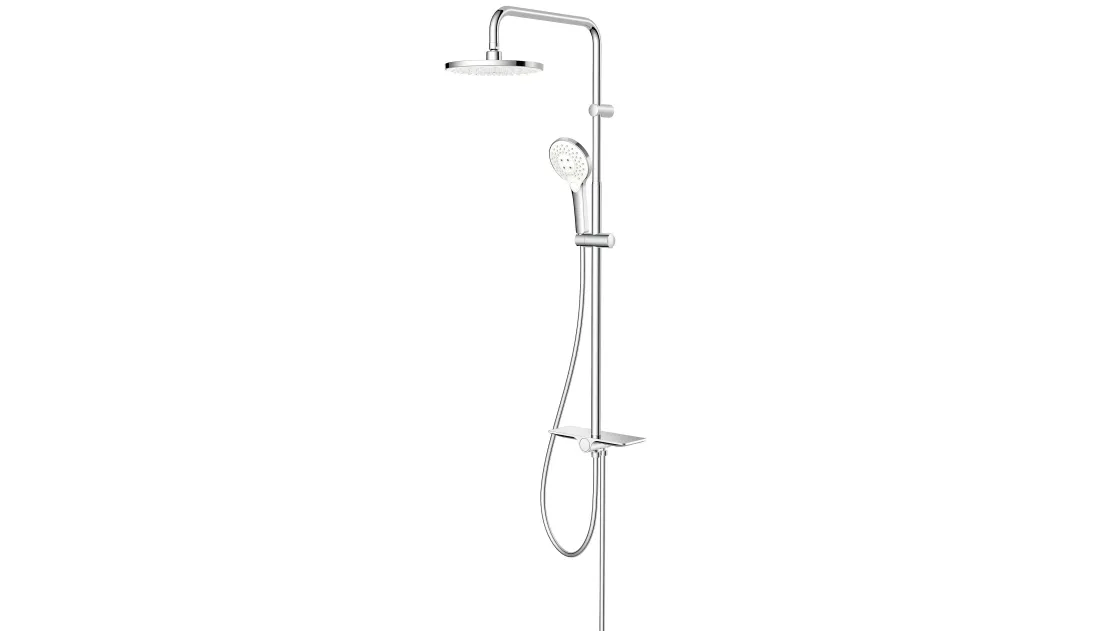 Geniet Van Een Comfortabele Douche Met De Chroomkleurige Doucheset Basento Van Aquavive. De Douchekop Heeft Een Diameter Van 227 Mm En Is Voorzien Van Drie Verschillende Waterstralen: Spray, Cross Water En Mix. De Set Is Heeft Een 150 Cm Lange Doucheslang Van Pvc En Is Waterbesparend. Op Het Geintegreerde Planchet Kan Je Bijvoorbeeld Jouw Shampoo Of Scheermesje Kwijt. Extra Handig!