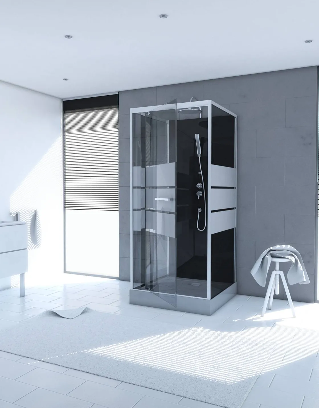 De Stijlvolle Chromen Douchecabine Study Van Aurlane Beschikt Over Een Draaideur Van Gehard Glas En Magnetische Sluiting. De Vereiste Hoogte Voor De Installatie Is 235 Cm. De Metaalgrijs Gelakte Aluminium Structuur En Het Chromen Handvat Zorgen Voor Een Strakke Afwerking.