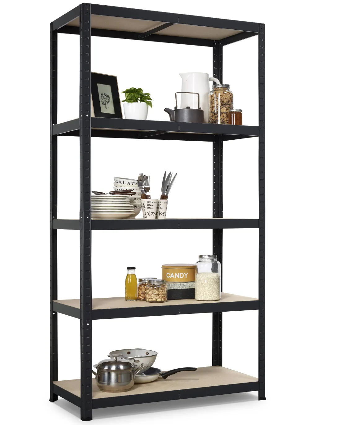 Dit Opbergrek Strong Van Avasco 176X90X45 Cm Is Gemaakt Van Stevig Gegalvaniseerd Staal En Voorzien Van 5 Legplanken Gemaakt In Mdf. De Stellingkast Is Eenvoudig Te Monteren Zonder Gereedschap En Elke Legplank Heeft Een Maximaal Draagvermogen Van 175 Kg.