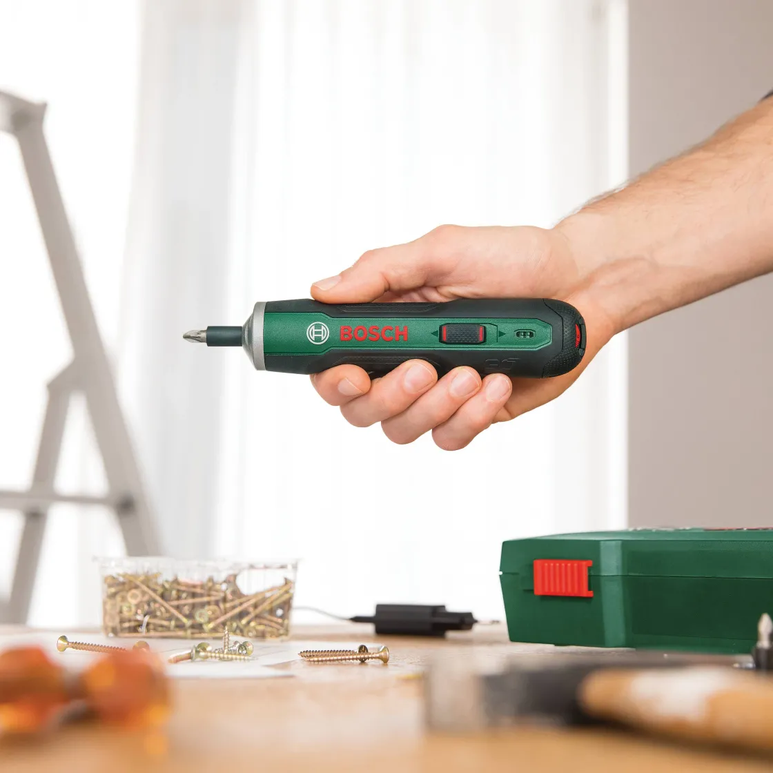De Bosch Schroevendraaier Op Accu Pushdrive Is Een Compacte En Handige 3,6 Volt Schroevendraaier. Dankzij De Push&Go Functie, Begint De Pushdrive Automatisch Met Schroeven Na Lichte Druk Op De Schroef. De Pushdrive Beschikt Over Een Neutrale Stand, Deze Biedt De Mogelijkheid Om Manueel Te Schroeven. Daarnaast Beschikt De Machine Ook Over Een Koppelinstelling, Die De Machine Nog Eenvoudiger In Gebruik Maakt. De Accuschroevendraaier Pushdrive Ligt Heel Aangenaam In De Hand En Wordt Standaard Geleverd In Een Robuuste Koffer Met 32-Delige Bitset En Een Micro-Usb Oplader.