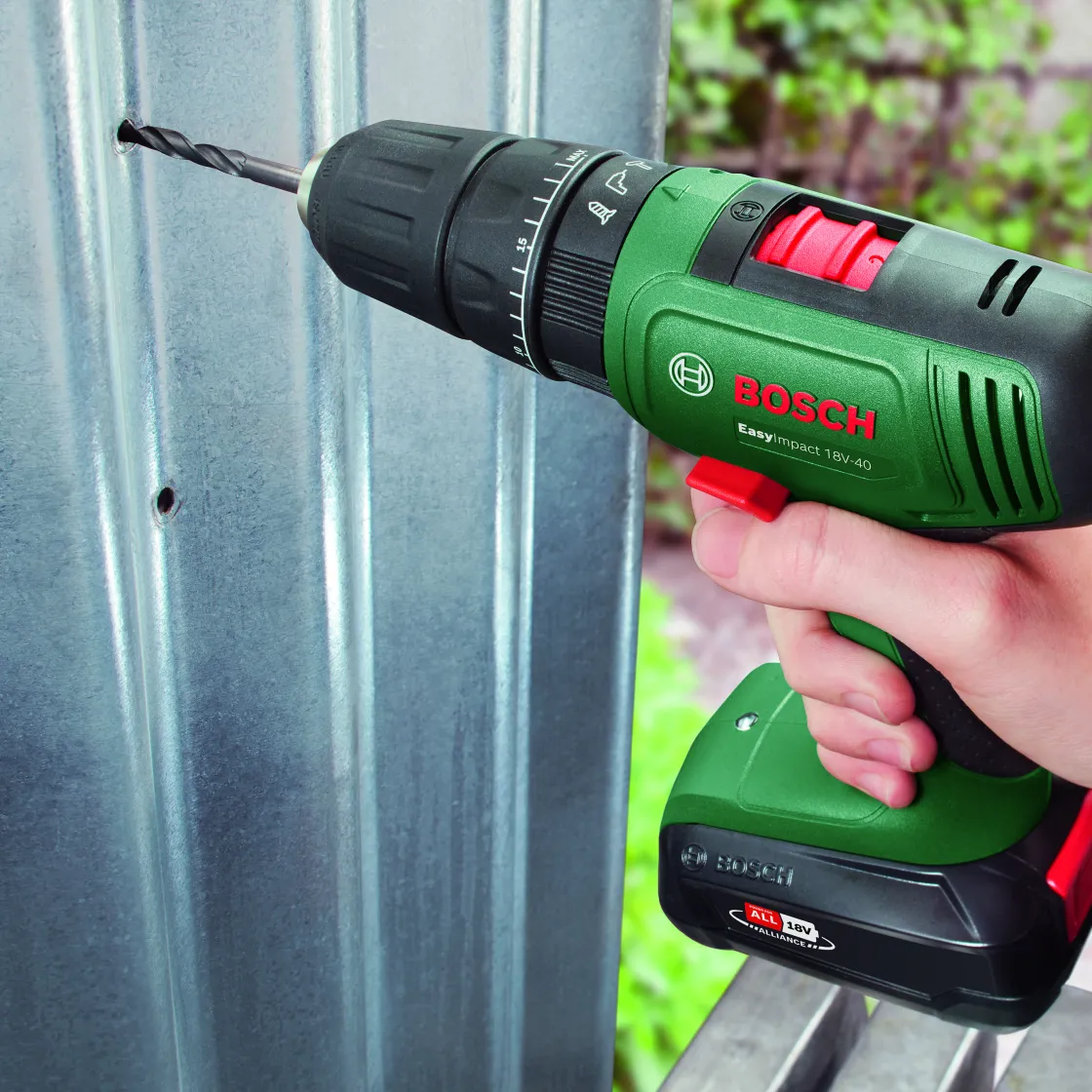 De Bosch Easyimpact 18V-40 Is De Handige All-Rounder Voor (Klop)Boren En Schroeven. Deze Lichte En Compacte Machine Levert De Ideale Mix Van Vermogen En Veelzijdigheid. Het Kiezen Van De Gewenste Modus Voor Schroeven, Boren Of Klopboren Is Zeer Eenvoudig. De Boorkop Van 13Mm Kan Hij Met Een Breed Scala Van Boren En Bitjes Worden Gebruikt.