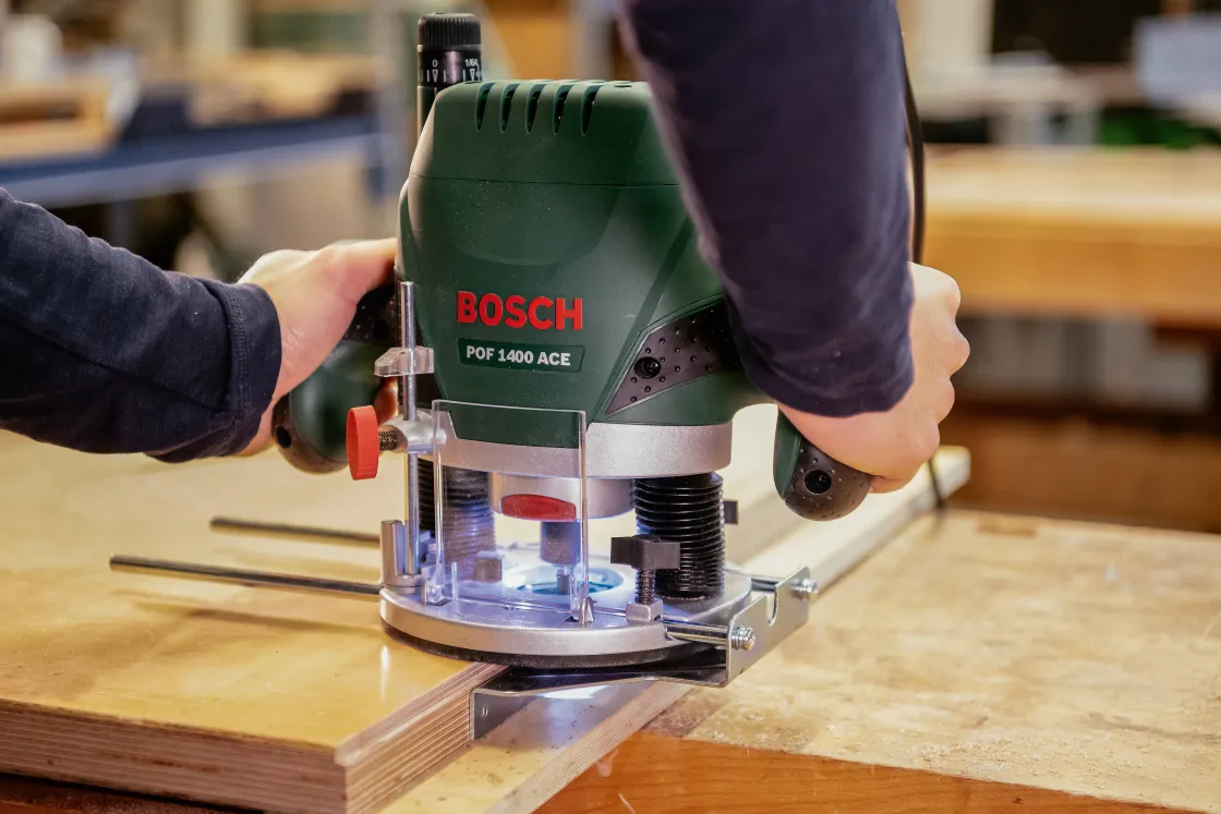 Met De Pof 1400 Ace Biedt Bosch Een Bovenfrees Voor Alle Doe-Het-Zelvers Die Zware Klussen Willen Verrichten. De Motor Van 1400 Watt Maakt Van De Pof 1400 Ace Een Zeer Krachtige Machine. De Veiligheidsuitrusting En Het Hoge Bedieningsgemak Maken Ook Bij Intensief Gebruik Een Ontspannen, Onvermoeibare Werkhouding Mogelijk – En Zorgen Toch Voor Precieze Resultaten.