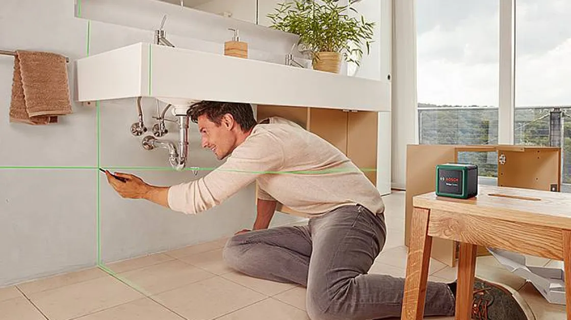 Deze Kruislijnlaser Van Bosch Heeft Een Zeer Goede Zichtbaarheid En Is Eenvoudig Te Hanteren Voor Doe-Het-Zelfklussen. Met De Intense, Groene Kruislaserlijnen Is De Quigo Green De Perfecte Uitlijnoplossing Voor Werken Bij Heel Fel Licht. Deze Levert Een Verbeterde Nauwkeurigheid Van +/- 0,6 Mm/M En Een Werkbereik Van Max. 12 Meter.