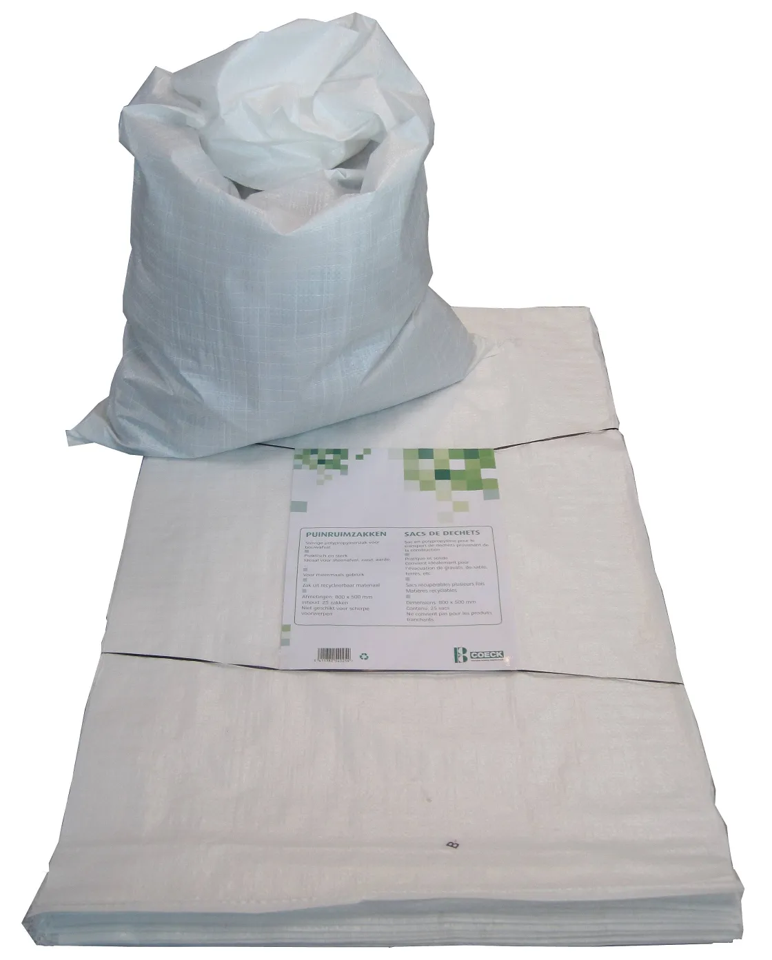 Coeck Puinruimzak In Formaat 50X80 Cm In Sterke Polypropyleen, Deze Zak Wordt Gebruikt Voor Het Ophalen En Afvoeren Van Bouwafval. Niet Geschikt Voor Scherpe Voorwerpen.