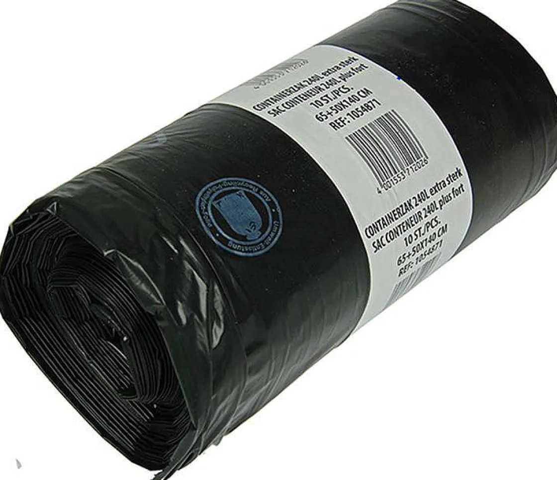De Zwarte Containerzak 240L 50X140Cm 10St Past In Grote Bakken Van 240 Liter. De Zak Is Gemaakt Van Polyethyleen.