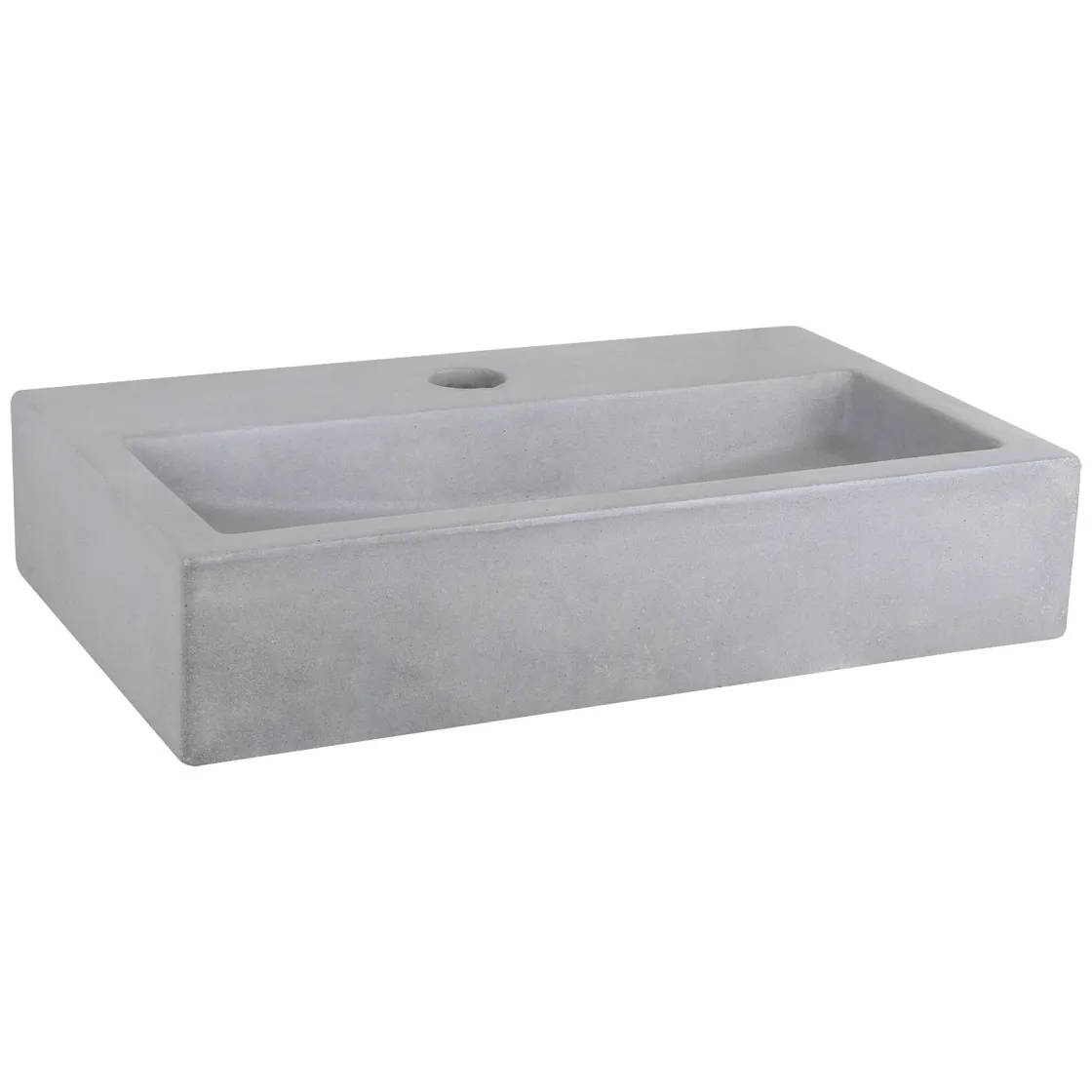 Het Strak Afgewerkte Licht Betonnen Wasbakje Flat Van Differnz Heeft Het Kraangat In Het Midden. Het Beton Is Verstevigd Met Glasfiber En Voorzien Van Een Waterafstotende Coating.