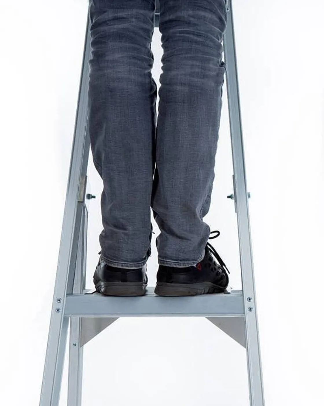 De Bordestrap Met Negen Treden Is Vervaardigd Van Hoogwaardig Geanodiseerd Aluminium. De Trap Is Gecertificeerd En Geschikt Voor Professioneel Gebruik, Ook Op Een Bouwplaats.