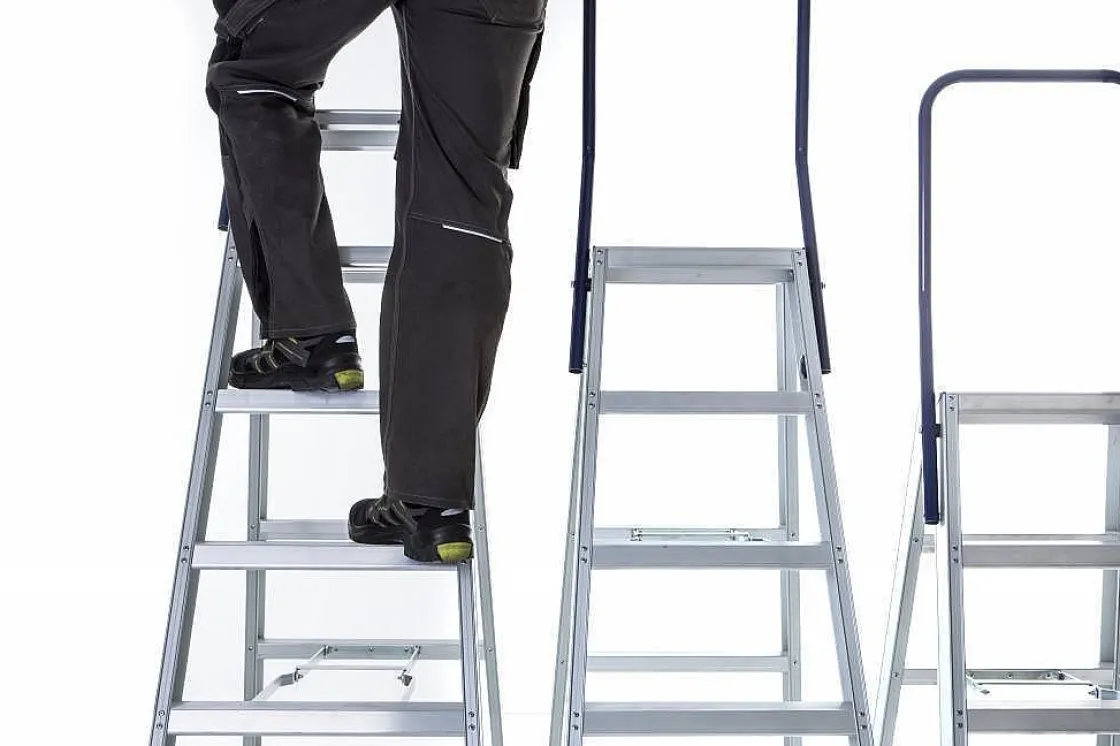 Deze Professionele Dubbele Trap Van Het Merk Eurostairs Is, Geproduceerd Van Hoogwaardig Geanodiseerd Aluminium. Alle Treden Zijn Voorzien Van Een Dubbel Profiel Voor Extra Stevigheid, Zijn Opgesloten In Het Profiel En Vastgenageld. Daarnaast Is De Dubbele Trap Voorzien Van Een Scharnierend Bovenplatform En Een Aluminium Scharnier Eronder.