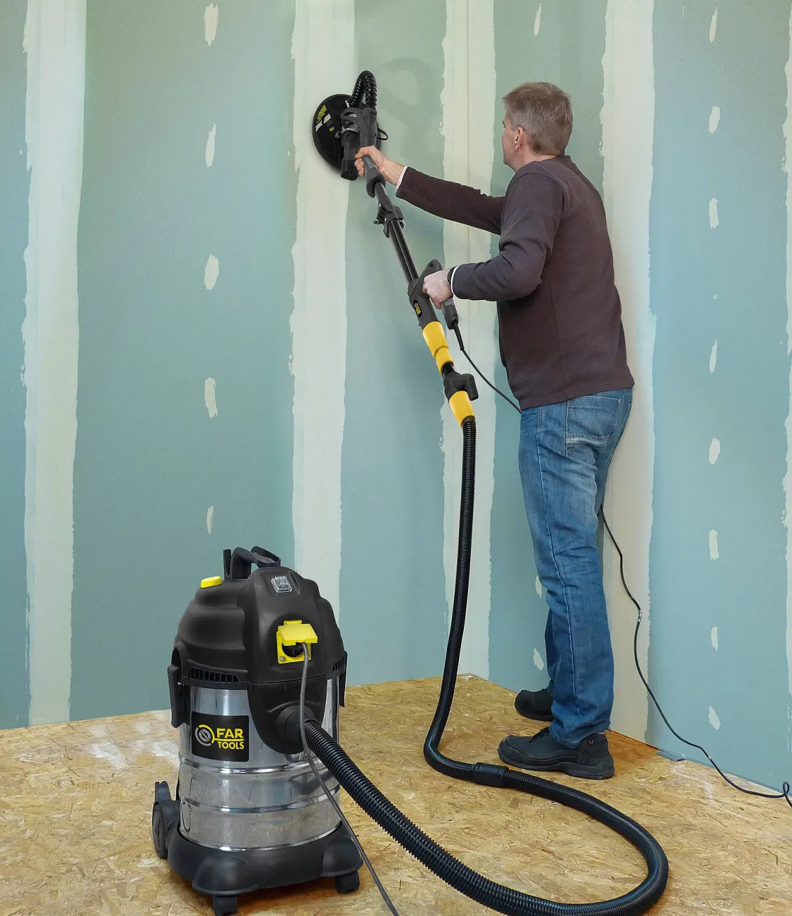 Deze Telescopische Wandschuurmachine Van Far Tools Is Geschikt Voor Het Schuren Van Stucwerk En Gipsplaat Met Minimale Stofvorming. Zijn Diameter Van Het Schuuroppervlak Bedraagt 225 Mm En Het Schuurpapier Ken Door Middel Van Een Klittenband Worden Vastgemaakt Aan De Machine. De Draaisnelheid Van Deze Excentrische Schuurmachine Bedraagt 700 Tot 1.700 T/Min.