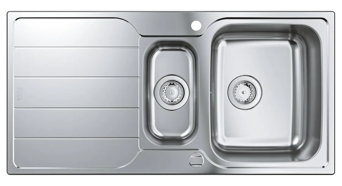 Deze Roestvrijstalen Inbouwspoelbak K500 Van Grohe Heeft Een Afmeting Van 970X500 Mm En Is Omkeerbaar Waardoor Je Hem Zowel Rechts Als Links Kunt Plaatsen. Het Blad Heeft Een Dikte Van 0,7 Mm En Reduceert Het Geluid Dankzij Grohe Whisper.