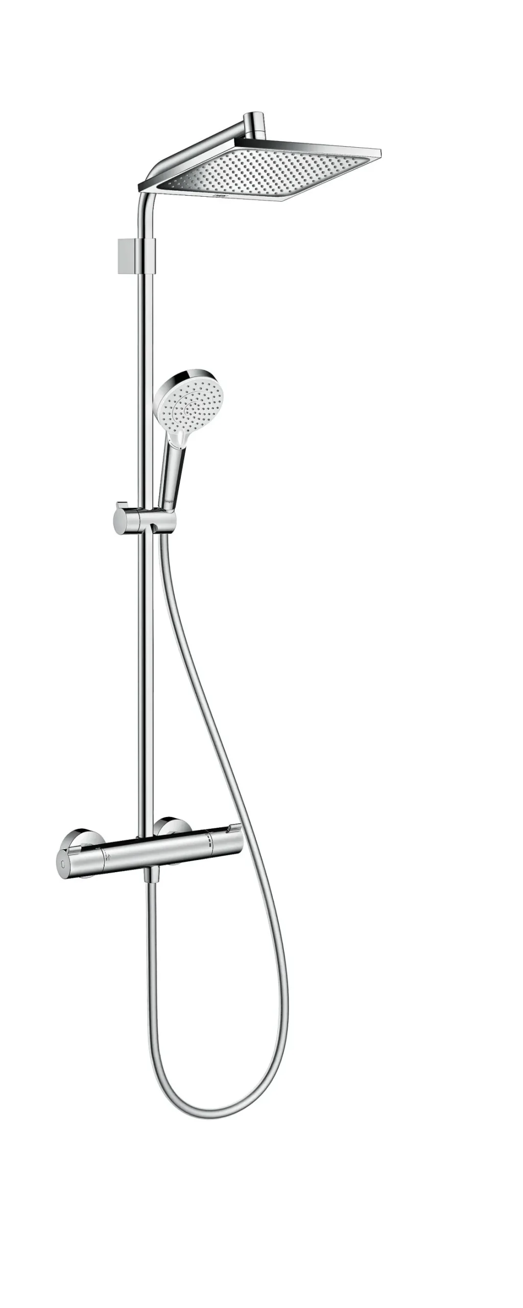 De Hansgrohe Crometta E240 Varia Doucheset Heeft Een Moderne Uitstraling Dankzij De Grote Vierkante Hoofddouche. De Set Is Volledig Compleet Met Een Crometta Vario 2-Straals Handdouche, Een Isiflex Doucheslang Van 160 Cm, Stang En Verschuifbare Houder Voor De Handdouche. De Myfox Thermostaatkraan Geeft Altijd Warm Water Op De Gewenste Temperatuur. Dat Is Niet Alleen Comfortabel, Maar Het Bespaart Gemiddeld Ook Op Je Water- En Energierekening Op Jaarbasis.
