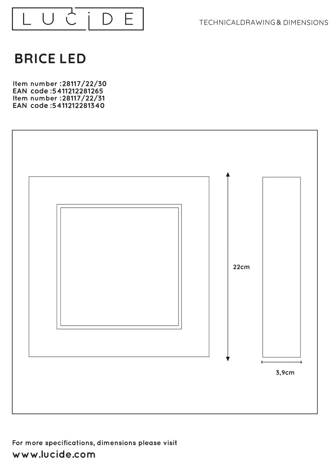 Brice Is Een Zwarte, Vierkante Plafondlamp Van Lucide. Een Plafondlamp Is Ideaal In Iedere Ruimte Van Je Huis, Of Het Nou In De Hal Is Om Gasten Te Verwelkomen Of De Woonkamer Om Alles Bij Te Schijnen. De Lamp Heeft Een Geintegreerde Ledlichtbron Van 22 Watt Die Zorgt Voor Een Warm Wit Licht Met Een Lichtopbrengst Van 1186 Lumen. De Lamp Meet 22 Op 22 Centimeter En Is Ip44, Wat Betekent Dat Hij Geschikt Is Voor In De Badkamer. Op Zoek Naar Meer Badkamerverlichting Van Lucide? Ontdek Het Aanbod In Onze Brico En Bricoplanit-Winkels En Online.