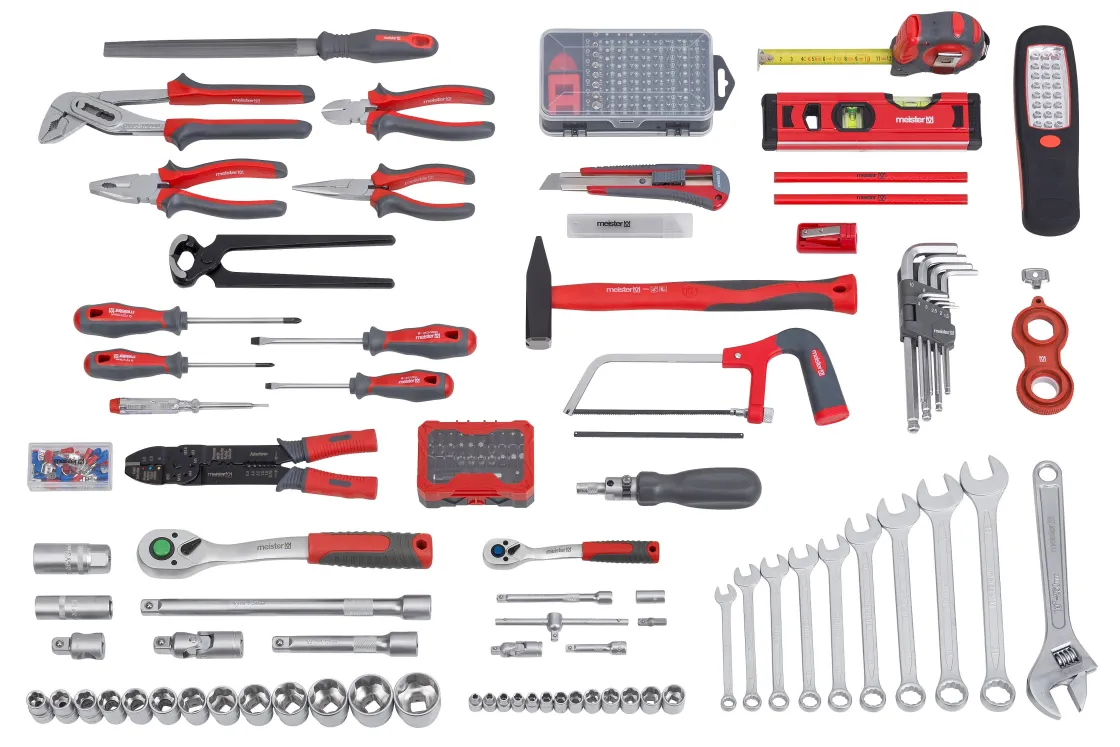 Deze Meister Gereedschapskoffer Met Trolleyfunctie 230-Delig Is Een Complete Gereedschapskoffer Met Alles Wat Je Nodig Hebt. De Koffer Bevat: Platte-Neus Tang 160Mm 2C, Zijsnijtang 160Mm 2C, Universele Tang 180Mm 2C, Waterpomptang 240Mm 2C, Kabelschoentang, 40 Kabelschoenen, Nijptang 200Mm, Cutter 18Mm, 5 Messen 18Mm, 9 Steek-Ringsleutels 8-21Mm, 9 Kogelkop Zeskantsleutels 1,5-2,5-3-4-5-6-8-10Mm, Sleutel 250Mm, 2 Schroevendraaiers 5,5 X 75 En 6. 5X100Mm, 2 Schroevendraaiers Ph1 X75 En Ph2X100Mm, Spanningstester 125-250V, 108 Precisiebits Voor Het Werken Aan De Laptop, Modelleren Etc, Mini-Zaag 150Mm, 2X Zaagbladen 155Mm (1Xmetaal+1Xhout), 13X Doppen ¼” Van 4 Tot 14Mm, Ratelhandgreep ¼” 72 Tanden, 2 Verlengstukken ¼” 55 En 100Mm, Gimbal ¼” 39Mm, 1 Connector ¼” 25Mm, 2 Adapters ¼” 25Mm, Schuifbare T-Greep ¼” 115Mm, 1 Tipadapter 25Mm, 13X Doppen ½” Van 12 Tot 32Mm, Ratelgreep ½” 72 Standen, 2 Verlengstukken ½”, 125 En 250Mm, 2 Bougiedoppen ½” 16+21Mm, Schuifbare T-Greep Adapter ½” 28Mm, Gimbal ½” 74Mm, Hamer 300G, Meetlint 5Mx19Mm, Waterpas 200Mm, Halfronde Vijl 200Mm, Werklamp 24+3 Led, 2X Timmermanspotloden, 1X Potloodslijper; Sleutel Voor Kranen.