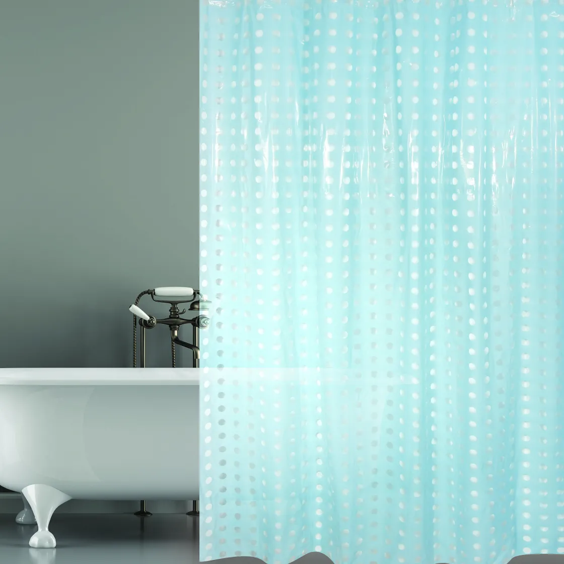 Het Glanzende Blauwe Douchegordijn Bristol Van Msv Is 180 Cm Breed, Waterafstotend En Gemaakt Van Plastic. Het Gordijn Is Voorzien Van Gestikte Boorden En Gaten Voor De Doucheringen.