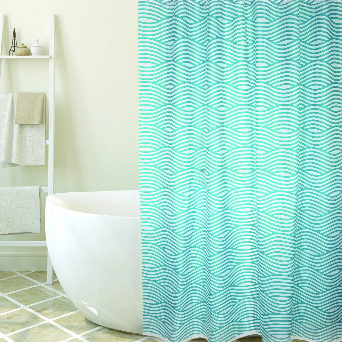 Het Lichtblauwe Douchegordijn Wave Van Msv Past In Iedere Badkamer. Het Douchegordijn Is 180 Cm Breed, Gemaakt Van Polyester En Voorzien Van Gaten Voor De Doucheringen.