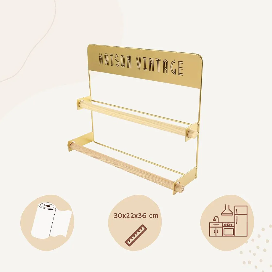 De Orange85 Keukenrolhouder Is Een Oplossing Voor Het Opbergen Van Keukenpapier Rollen. Het Product Is Ontworpen Om Aan De Muur Te Hangen En Biedt Ruimte Voor Meerdere Rollen. De Houder Is Gemaakt Van Goudkleurig Metaal En Heeft Afmetingen Van 35.5 X 9.5 X 28.3 Cm.Keukenrol Houder Van Orange85Keukenrollen Opbergengoudkleurig Designspecificaties Van De Keukenrolhouder:Merk: Orange85Materiaal: Metaal, Houtkleur: Goudafmetingen: 35.5 X 9.5 X 28.3 Cmhet Merk Orange85 Is Vooral Bekend Onder De Categorieen: Sport, Outdoor, Living, Kitchen En Beauty&Care. Het Diverse Aanbod Van Orange85 Bestaat Uit Kwalitatieve En Stijlvolle Producten.