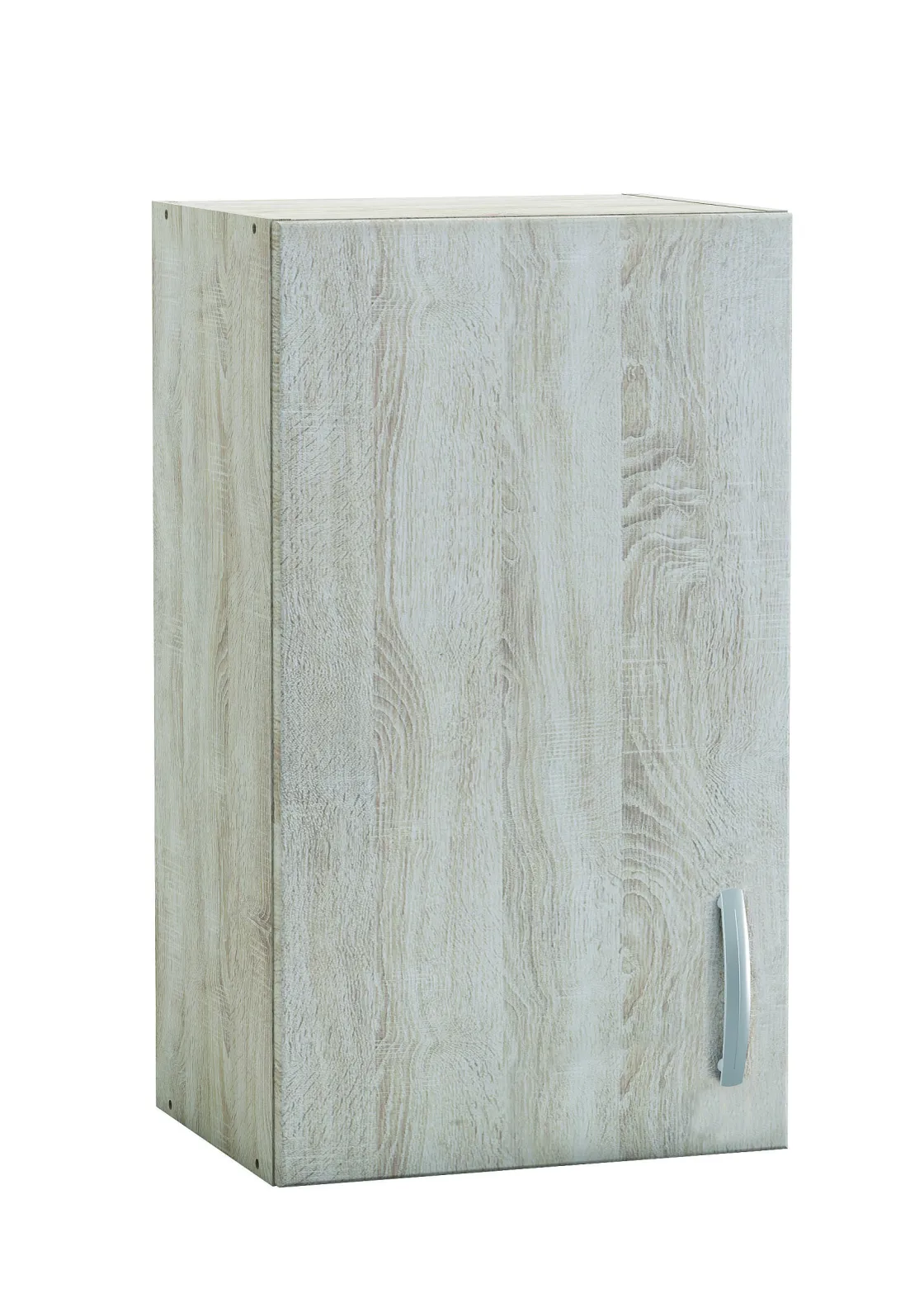 Hoge Kast Met 1 Deur Van Geborsteld Eiken Melamine. 1 Verstelbare Plank, Nuttige Afmetingen: 36,8X27 Cm. Grijs Gelakt Handvat, Hartafstand 12,8 Cm.