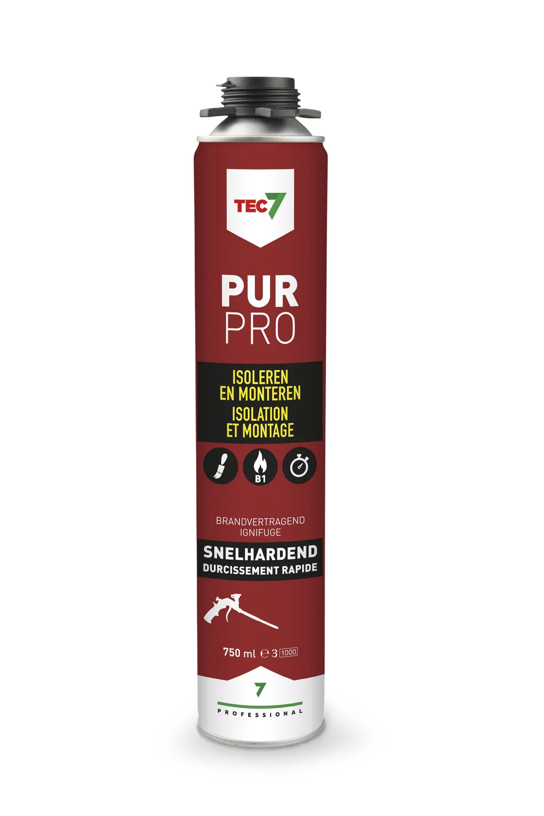 Pur Pro Isolatie- En Montageschuim -Aerosol 750Ml Is Een Pu-Schuim Met Brandvertragingsklasse B1, Voor Gebruik Met Een Pur-Pistool, Voor Montage, Vulling, Afdichting, Isolatie, Voorkoming Van Koude- En Geluidsbruggen, …
