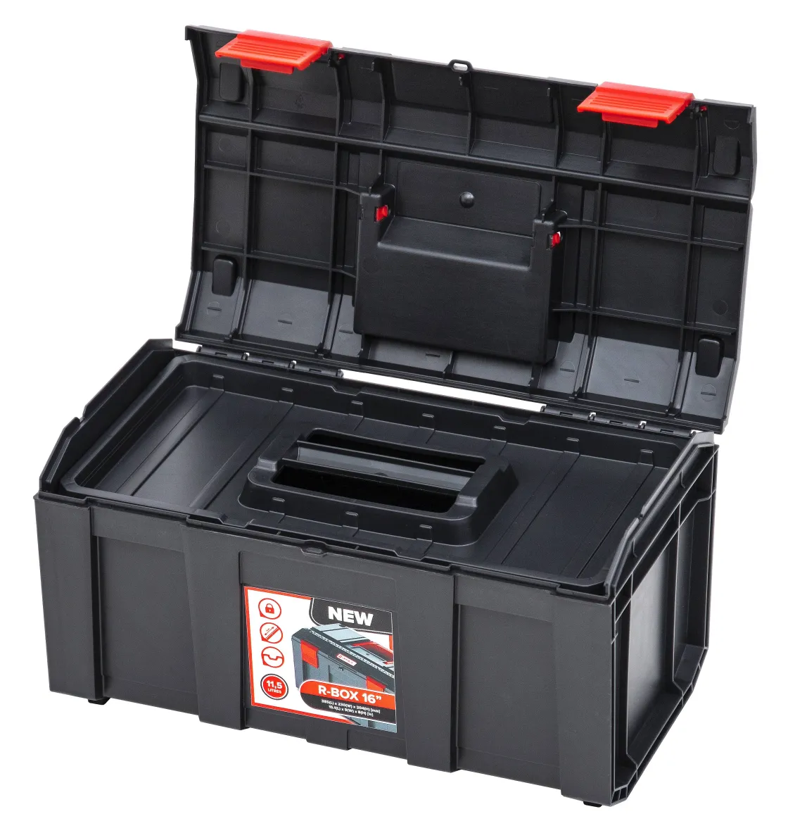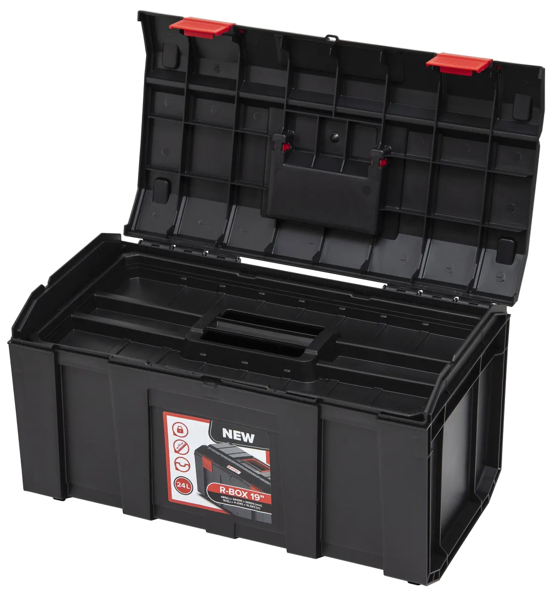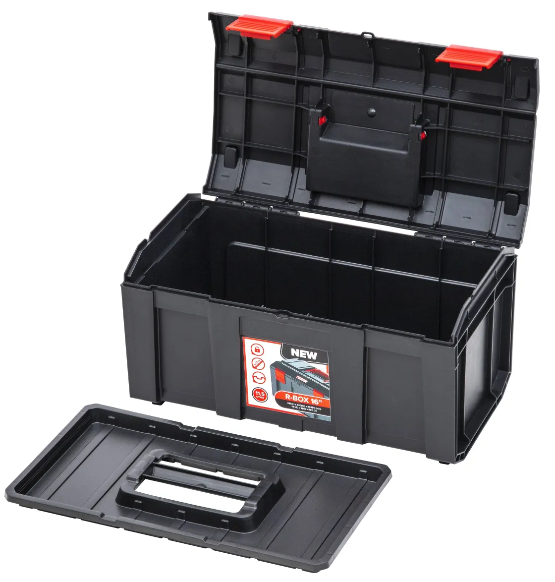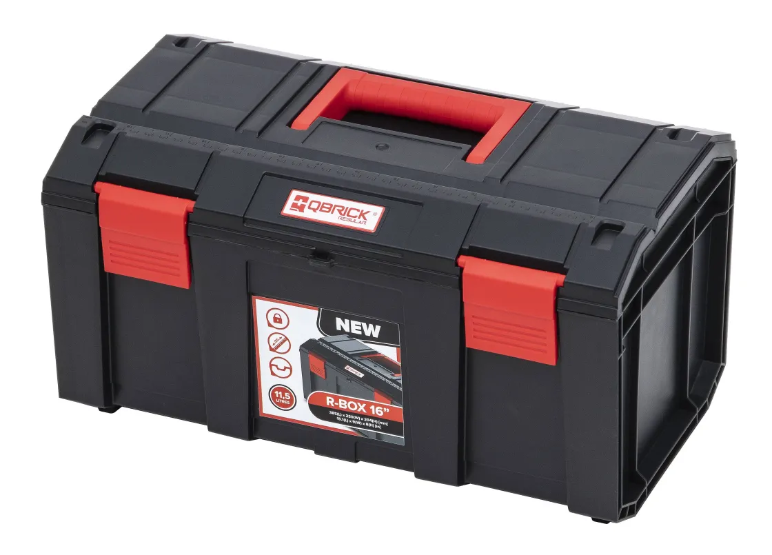 De Qbrick Regular R-Box 19″+ 16″ Bestaat Uit Een Set Van 2 Gereedschapskoffers. Ideaal Om Al Je Tools En Accessoires In Op Te Bergen En Overal Mee Te Nemen. De Gereedschapskoffers Beschikken Over Een Geleidesteun Voor Zaagwerk, Een Hangslotbeugel En Verstevigingsribbenen Clips Ter Bescherming Van Al Je Toebehoren. Door Het Ergonomische Handvat Neem Je Gemakkelijk Al Je Gereedschap Mee.