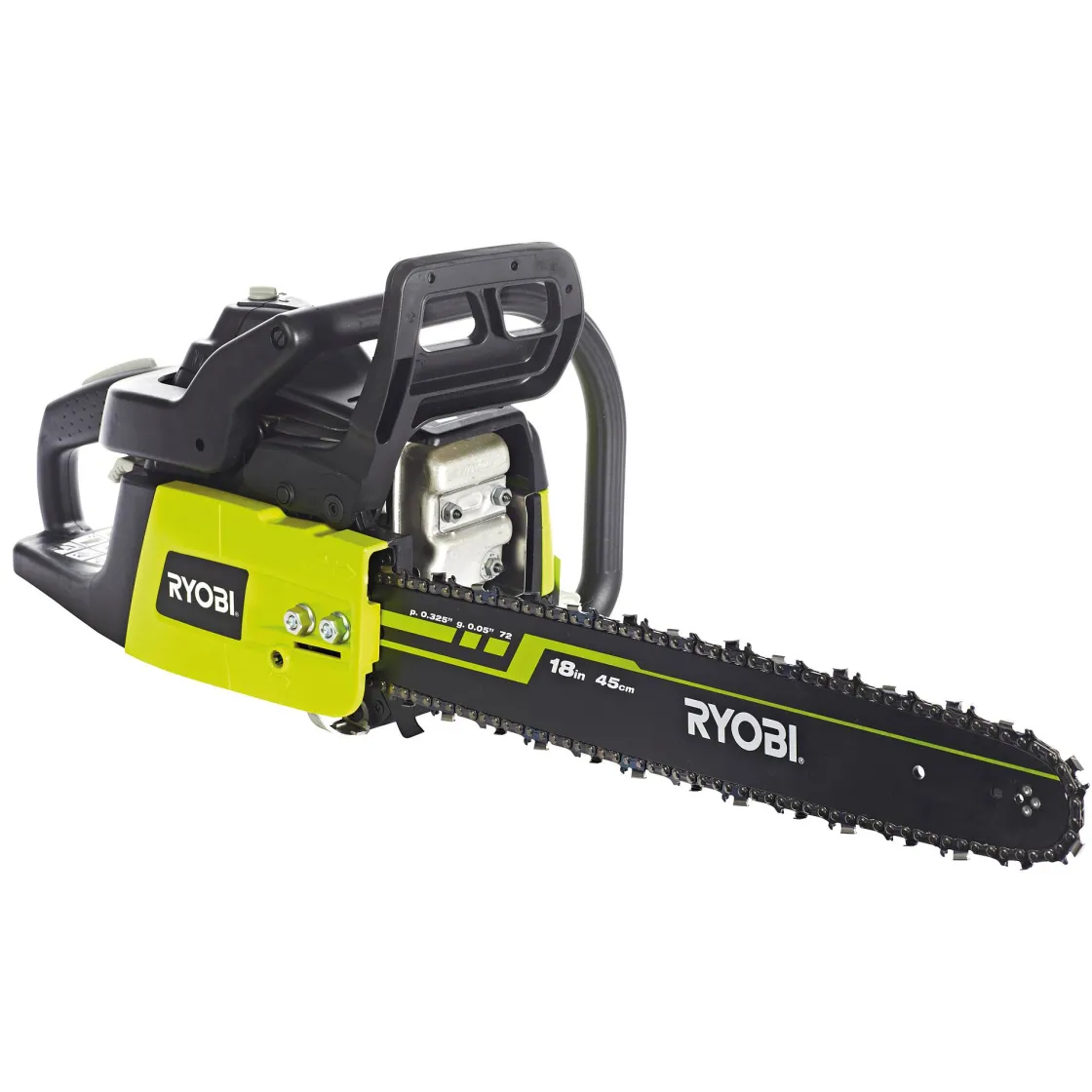 Deze Kettingzaag Op Benzine Van Ryobi Beschikt Over Een 2-Takt Motor Met Een Volledig Gelagerde Krukas Voor Uitstekende Vermogen- En Gewichtsverhouding Met Een Hoog Koppel. Hij Beschikt Over Een Milieuvriendelijke Motortechnologie En De Lengte Van Het Zwaard Bedraagt 45 Cm. De Maximale Kettingsnelheid Is 22 M/S Waardoor Je Snel En Krachtig Kan Zagen.