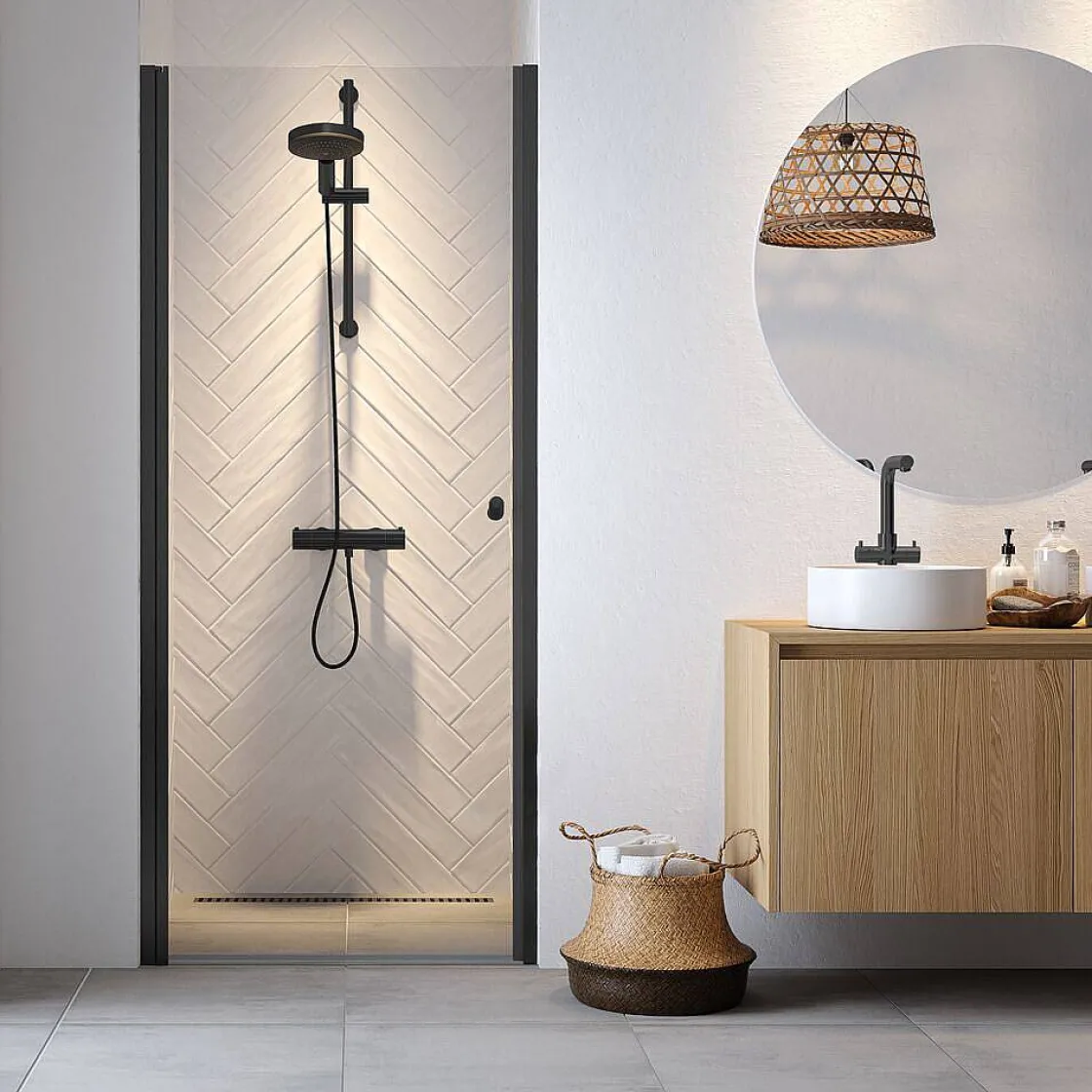 Brico Sealskin Hooked Draaideur In Nis 90X200Cm Matzwart |6Mm Helder Veiligheidsglas Met Antikalk Coating Discount