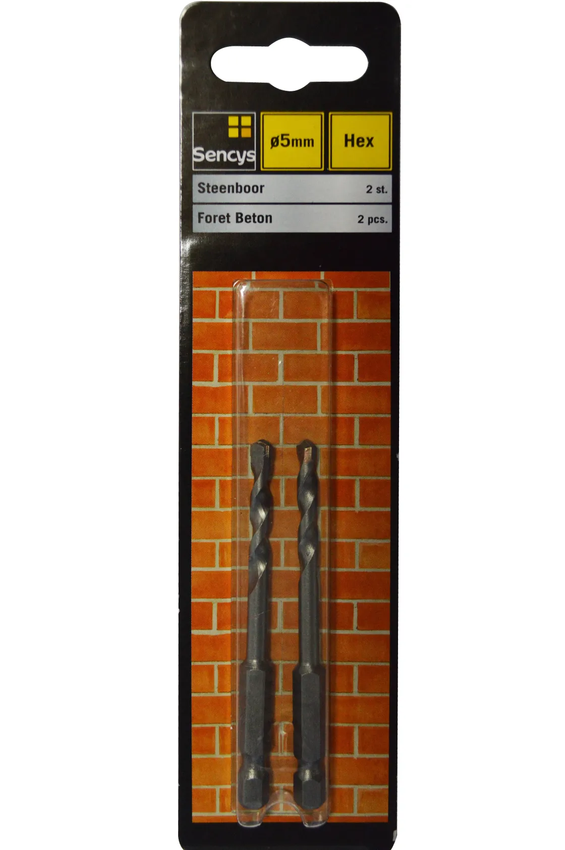 Deze Betonboor Van Sencys Beschikt Over Een Zeskantgreep Met Een Verlangstangontwerp Waardoor Hij Niet Kan Wegglijden. Gebruik Deze Boor Voor Het Metselwerk In Licht Beton, Kalksteen, Natuursteen En Kunststeen. De Lengte Van De Boor Bedraagt 85 Mm En Zijn Diameter Bedraagt 5 Mm. Inclusief Ontvang Je 2 Stuks.