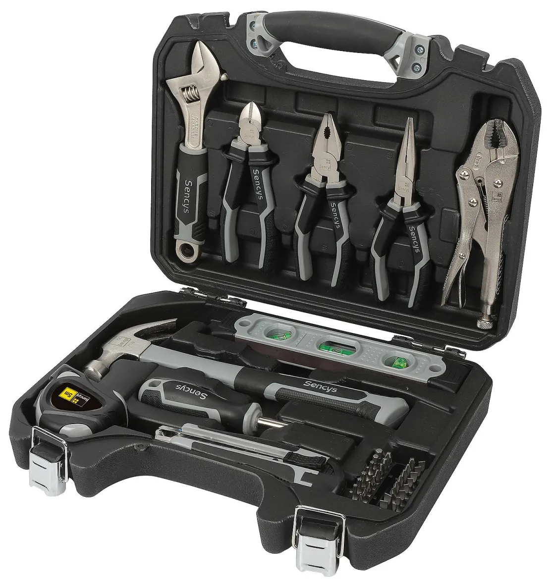 Met Deze Sencys Gereedschapset Ben Je Klaar Voor Elke Klus. De Gereedschapskoffer Bevat 42 Delen En Is Gemakkelijk Te Vervoeren Dankzij Het Handvat. Het Handgereedschap Van Sencys Is Gemaakt Van De Beste Materialen En Volgens De Laatste Technische Inzichten. Deze Koffer Is Gemaakt Van Een Hoge Kwaliteit Die Jaren Lang Meegaat. De Set Bestaat Uit Onder Andere Uit Een Inbussleutel Set, Een Verstelbare Moersleutel En Precisieschroevendraaiers.