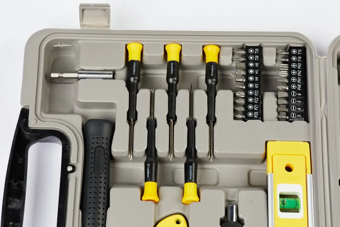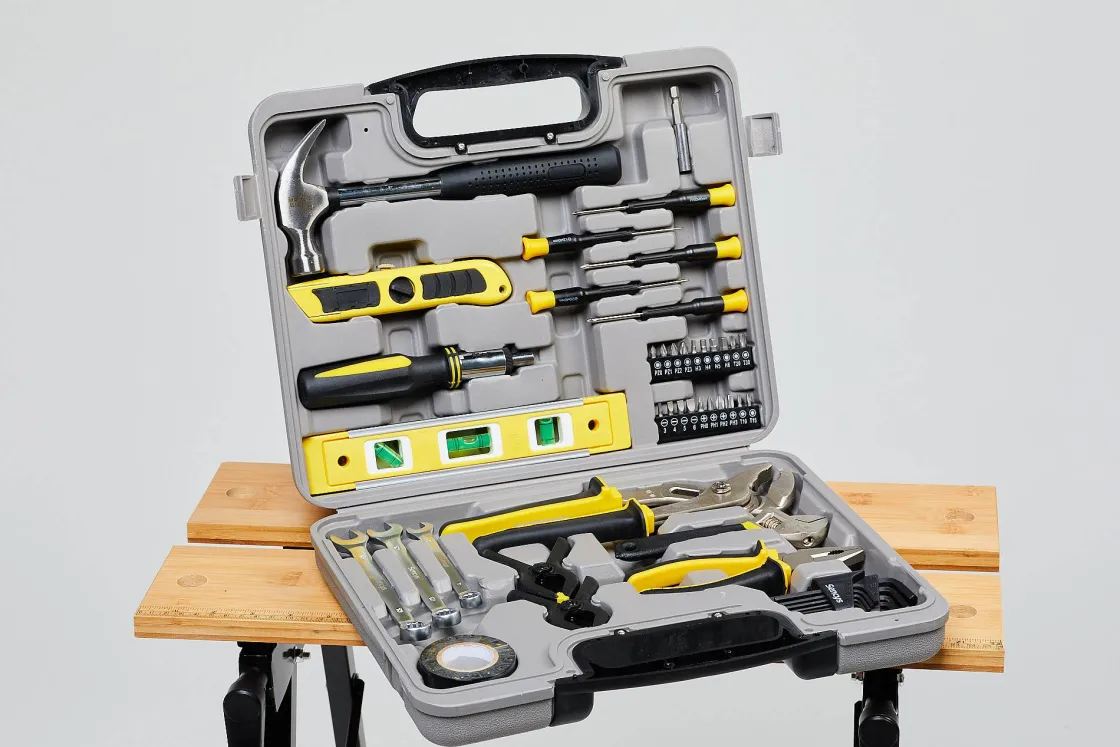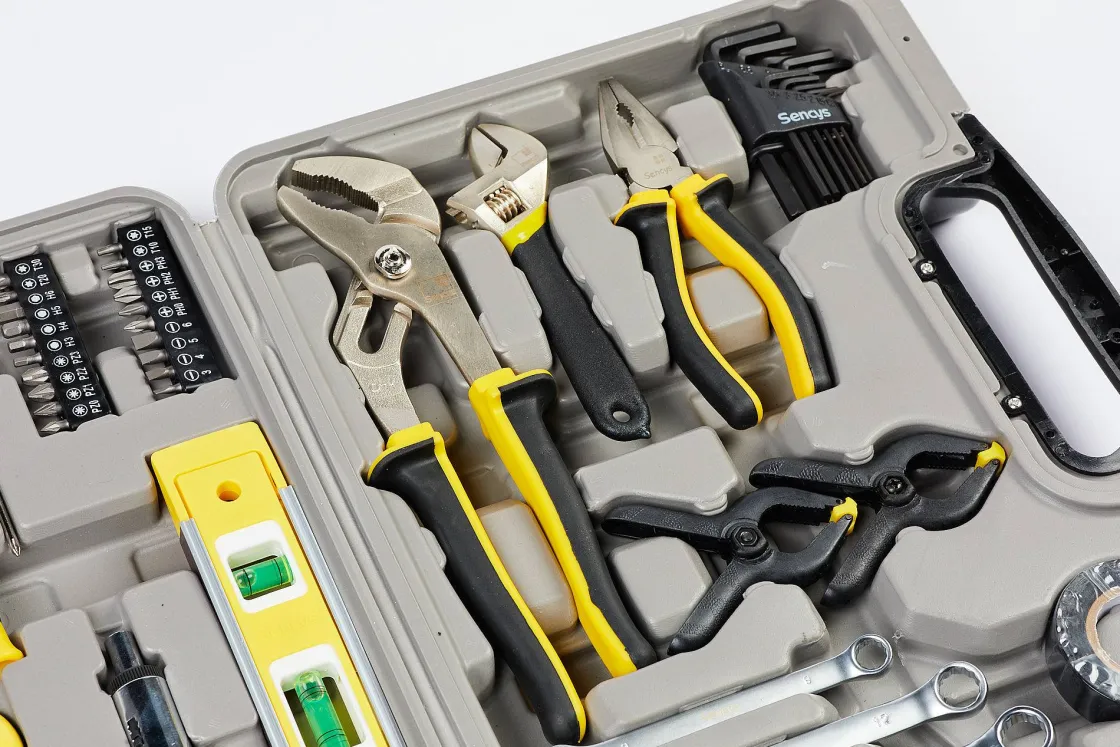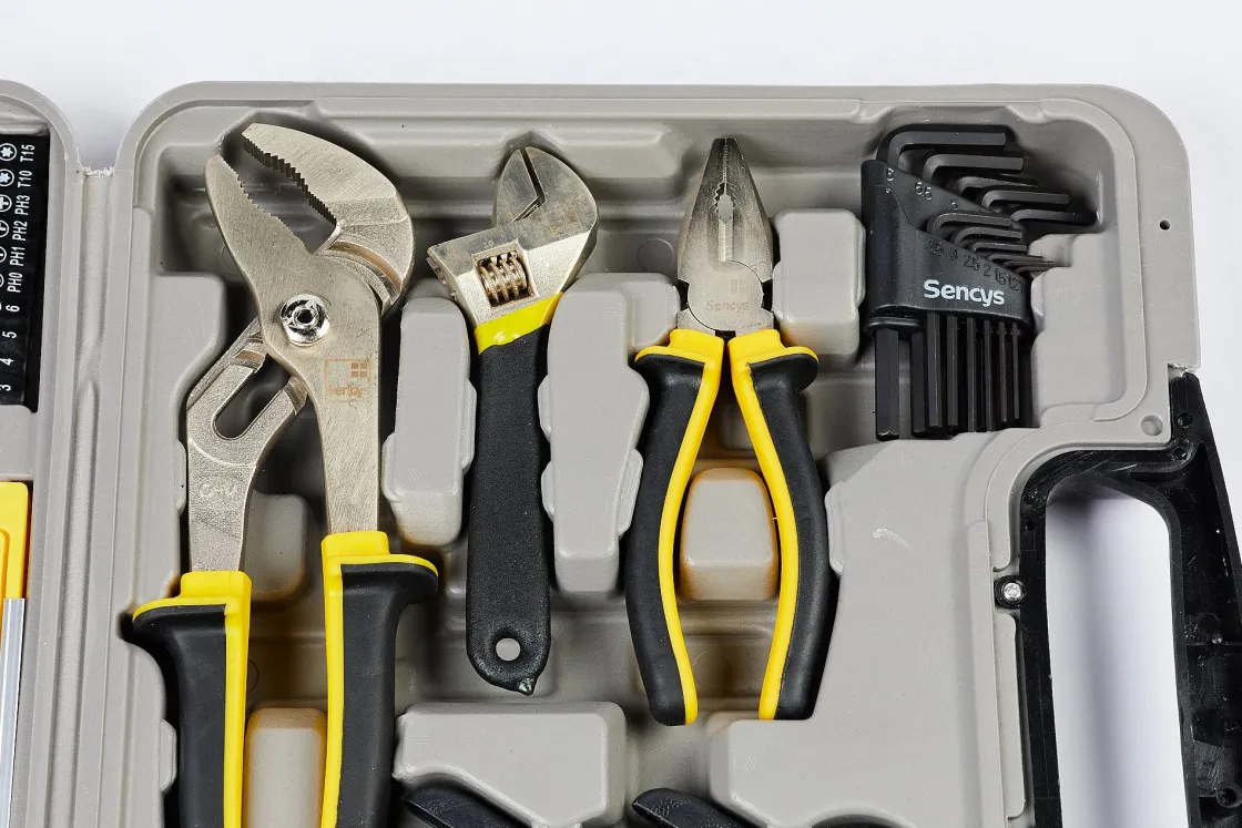 Deze Gereedschapskoffer Van Sencys Beschikt Over 50 Accessoires, Zijnde: 1 X Klauwhamer, 3 X Ringsleutels, 1 X Waterpomptang, 1 X Combinatietang, 1 X Verstelbare Ringsleutel, 11 Verschillende Inbussleutels, 5 Verschillende Precisie Schroevendraaiers, 2 X Veerklemmen, 1 X Rol Plakband, 1 X Waterpas, 1 X Ratelsleutel, 20 Verschillende Schroevendraaier Bits, 1 X Bithouder En 1 X Mesje.