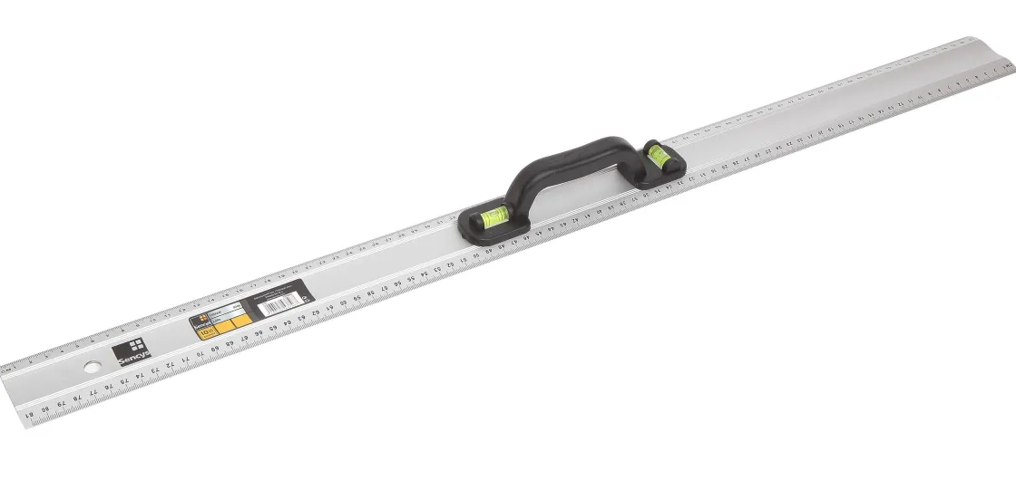 De Sencys Aluminium Meetlat, Ook Wel Regel Of Liniaal Genoemd, Heeft Een Duidelijke Metrische Schaalverdeling En Ingebouwde Horizontale En Verticale Waterpassen. Hij Heeft Een Breed Handvat Voor Een Goede Grip. De Meetlat Is Met Zijn 80Cm Lengte Ideaal Voor Het Nauwkeurig Afsnijden Van Bijvoorbeeld Tapijt Of Zeil, Het Gladstrijken Van Wanden Of Zandondergronden En Het Maken Van Markeringen. Met Gat Om De Meetlat Makkelijk Weg Te Hangen.