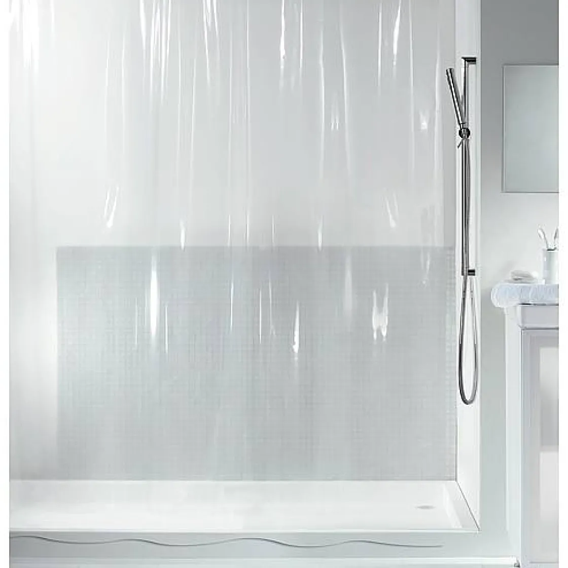 Deze Transparante Douchegordijn Maakt Het Mogelijk Om Zelfs De Kleinste Badkamers Optisch Te Vergroten. Het Biedt Het Voordeel Van Een Glazen Douchewand Zonder De Nadelen!