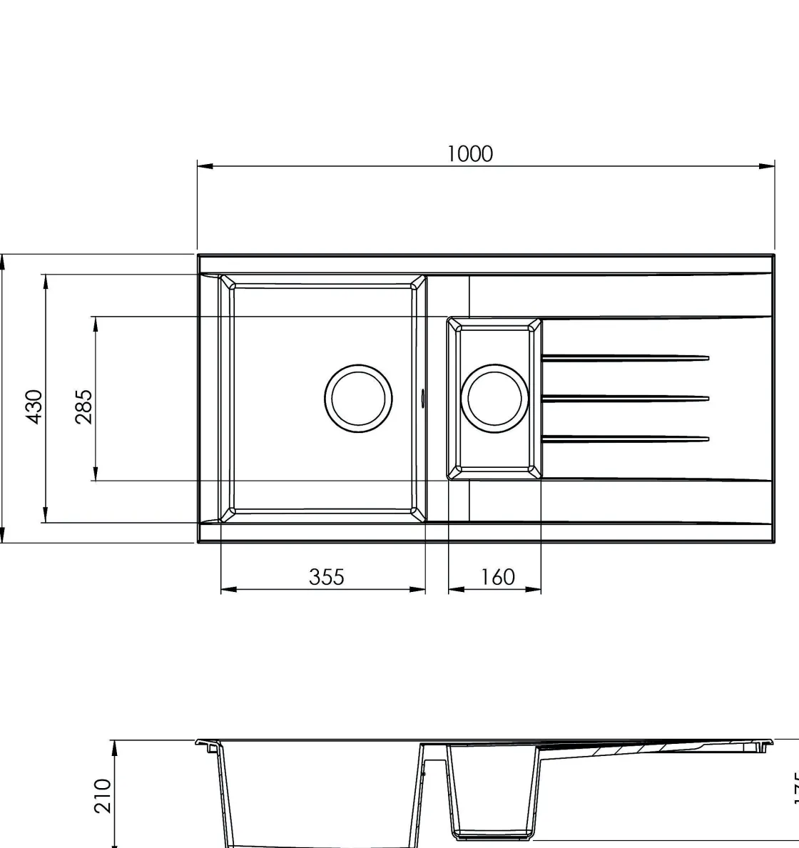 De Bak Is Inclusief Een Manuele Afvoer Met Een O90 Mm Afvoerplug, Een Ruimtebesparende Sifon, Overloop En Een Aansluiting Voor Een (Vaat)Wasmachine. De Dikte Van Het Werkblad Is 28 – 38 Cm. Je Kunt Er Ook Eenvoudig In Boren Voor Het Plaatsen Van Een Kraan (35 Mm).