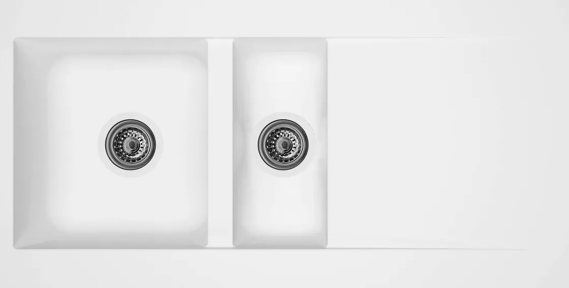 De Bak Is Inclusief Een Manuele Afvoer Met Een O90 Mm Afvoerplug, Een Ruimtebesparende Sifon, Overloop En Een Aansluiting Voor Een (Vaat)Wasmachine. De Dikte Van Het Werkblad Is 28 – 38 Cm. Je Kunt Er Ook Eenvoudig In Boren Voor Het Plaatsen Van Een Kraan (35 Mm).