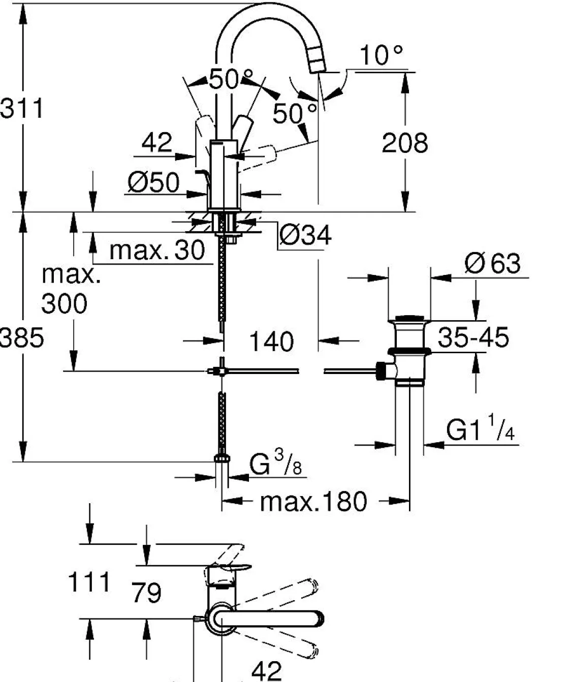 Start Wastafelmengkraan L-Size, Chroom, Metalen Hendel, Grohe Silkmove 28 Mm Cartouche Met Keramische Schijven, Met Temperatuurbegrenzer, Grohe Water Saving: Waterbesparende Mousseur, 5,7 L/Min, Draaibare Buisuitloop, Automatische Lediging 1 1/4″, Flexibele Aansluitslangen, Grohe Fastfixation Snelle En Eenvoudige Montage