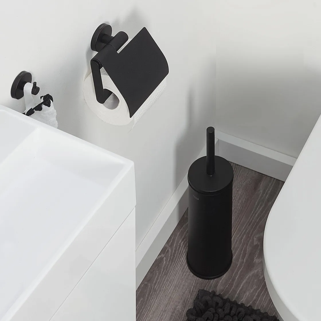 Brico Tiger Accessoireset Boston – Toiletborstel Met Houder Vrijstaand – Toiletrolhouder – Haak – Zwart Outlet