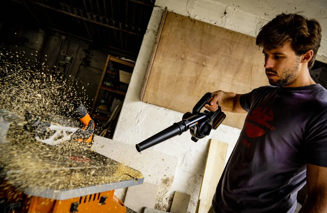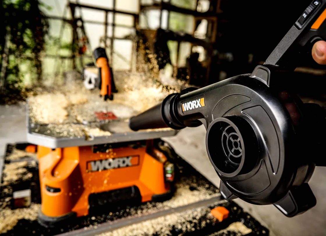 De Worx Baretool Wx094.9 Elektrische Blazer Is Een Krachtige Blazer Met Een Maximale Luchtstroom Tot 260 Km Per Uur. Compact En Lichtgewicht, Handig Voor Het Reinigen Van Werkplaatsen, Veranda’S En Kleine Ruimtes.