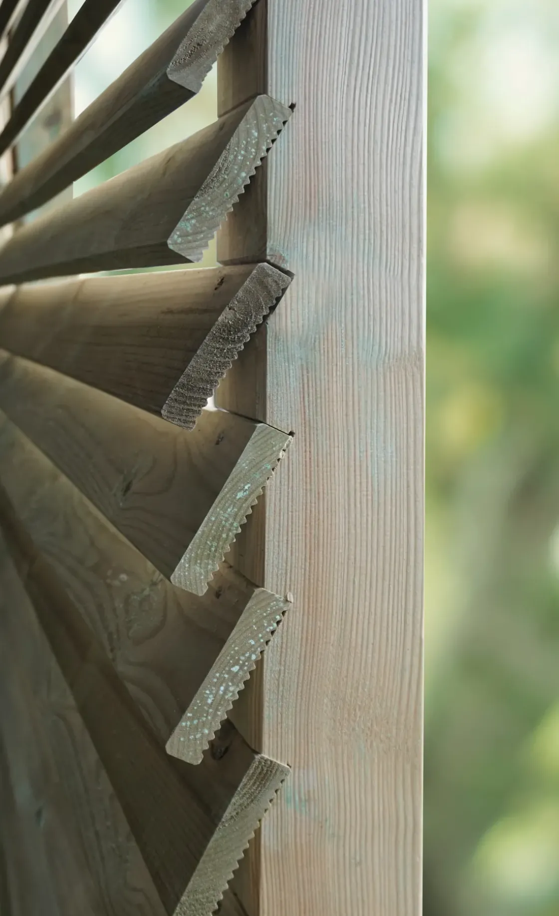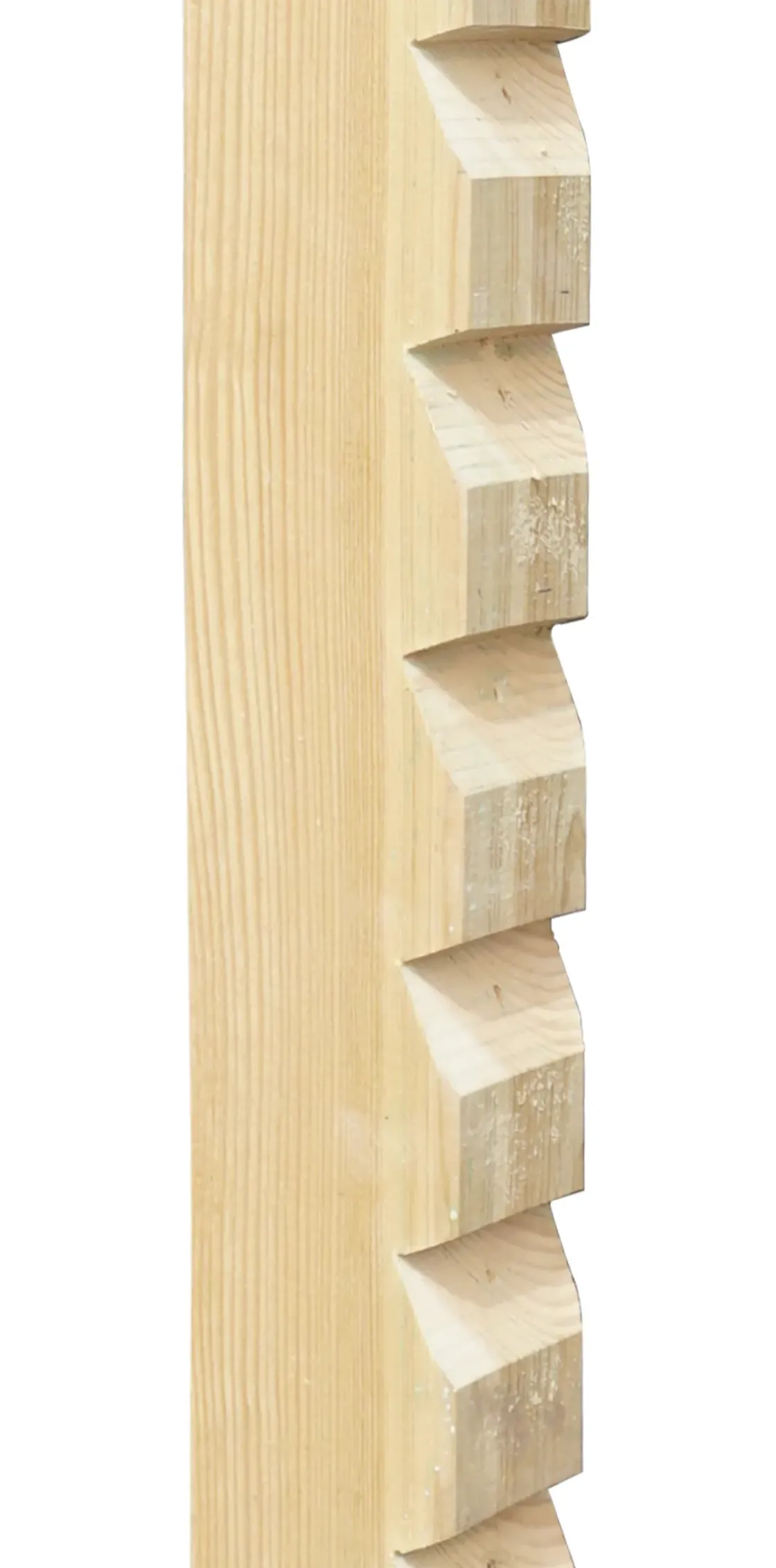 De Klasse Iii Autoclaaf Behandelde Grenen Paal Met 23 Inkepingen Is Geschikt Voor Een Rolluikhek. Hij Is Geschikt Voor Latten Van 19 Tot 27 Mm. De Paal Is Omkeerbaar.