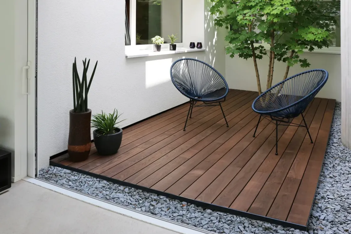 Wanneer Je De Vlonderplanken, De Rails En De Rubberband Netjes Thuis Geleverd Hebt Gekregen Kun Je Aan De Slag Met Het Installeren Van Je Terras. Je Zult Zien Dat Dit Erg Eenvoudig Is En Dat Je Aan Het Einde Trots Bent Op Wat Jij Hebt Gemaakt. Je Kunt De Nadat Je Deze Hebt Voorzien Van De Zelfklevende Rubberband Rechtstreeks Plaatsen Op Een Stabiele En Vlakke Ondergrond. De Vlonderplanken Die Je Vooraf Op Maat Hebt Gezaagd Klik Je Daarna Op De Voorgemonteerde Clips Van De Rails Vast. Tot Slot Kun Je De Zijkant Van Je Terras Afwerken Met De Van Grad By You. Zorg Hier Ook Weer Voor Voldoende Lengte. Wil Je Een Voorwerp Wegnemen Dat Onder Je Vloer Is Gevallen, Een Plank Vervangen Of Je Terras Anders Inrichten? Klik Simpelweg De Vlonderplanken Los Met Behulp Van De Losklik . Bekijk Het Filmpje Bij Alle Accessoires Om Je Nog Beter Op Weg Te Helpen.