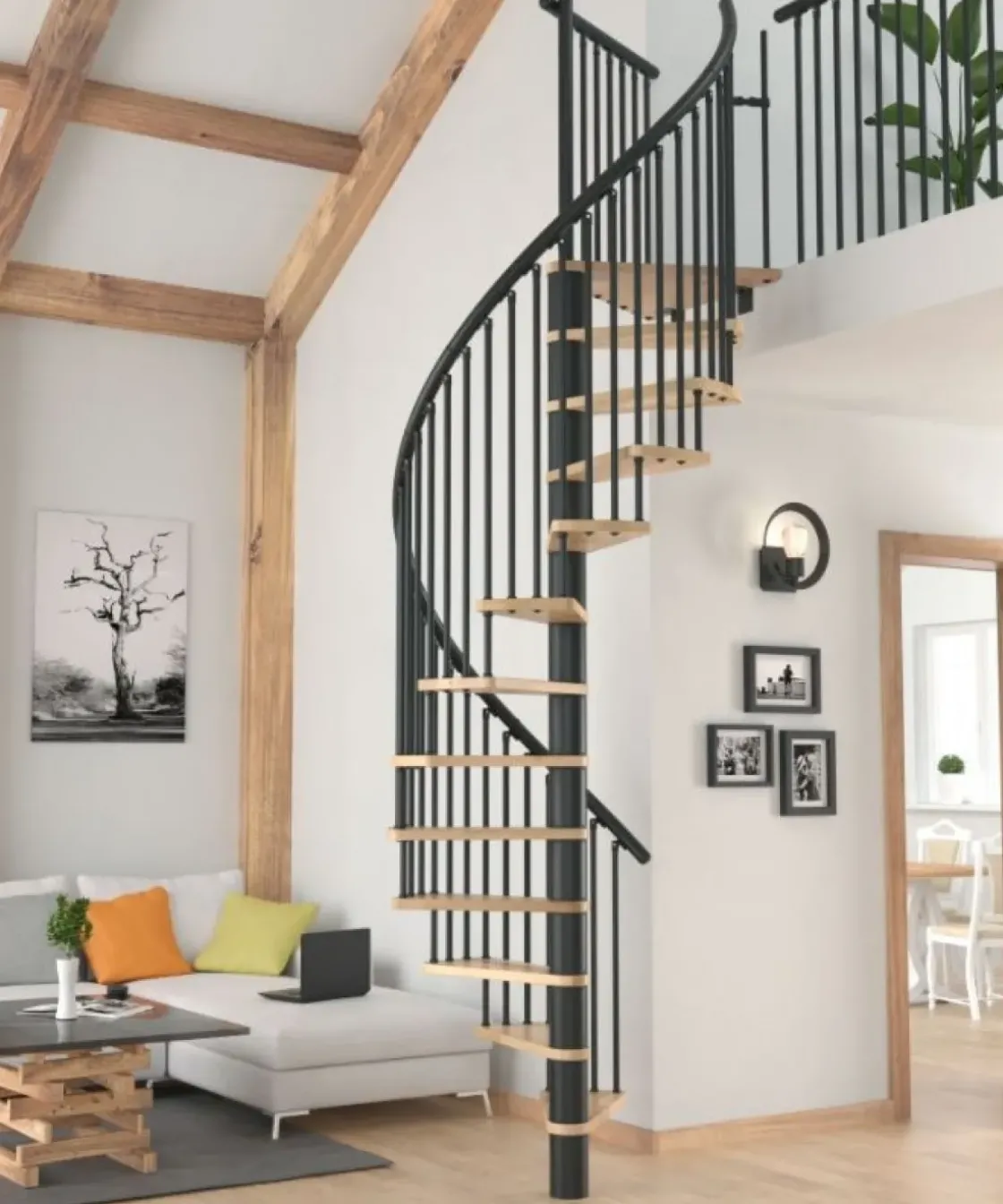 Handystairs Wenteltrap “Spirale” – Diameter 120Cm – Hoogte 309Cm – 12 Beuken Treden – Zwart Staal-Brico Clearance