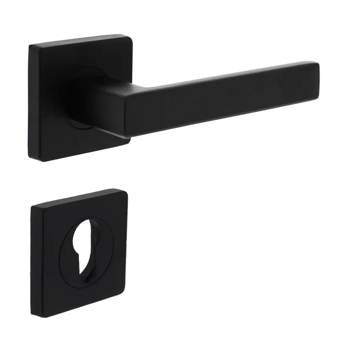 Intersteel Deurklink Op Vierkante Rozet, Nokken 7Mm + Cilinderrozetten Zwart Mat-Brico Clearance